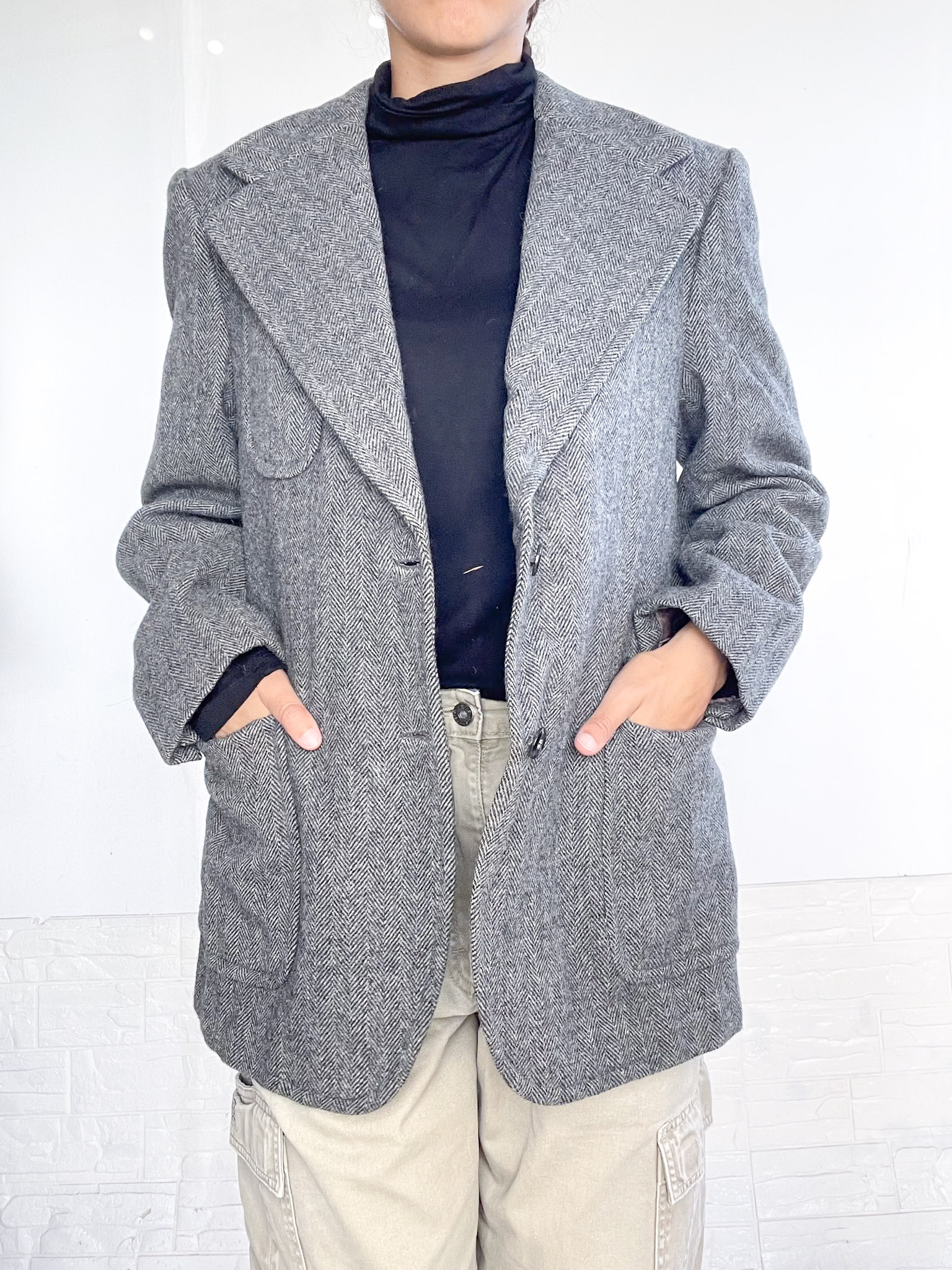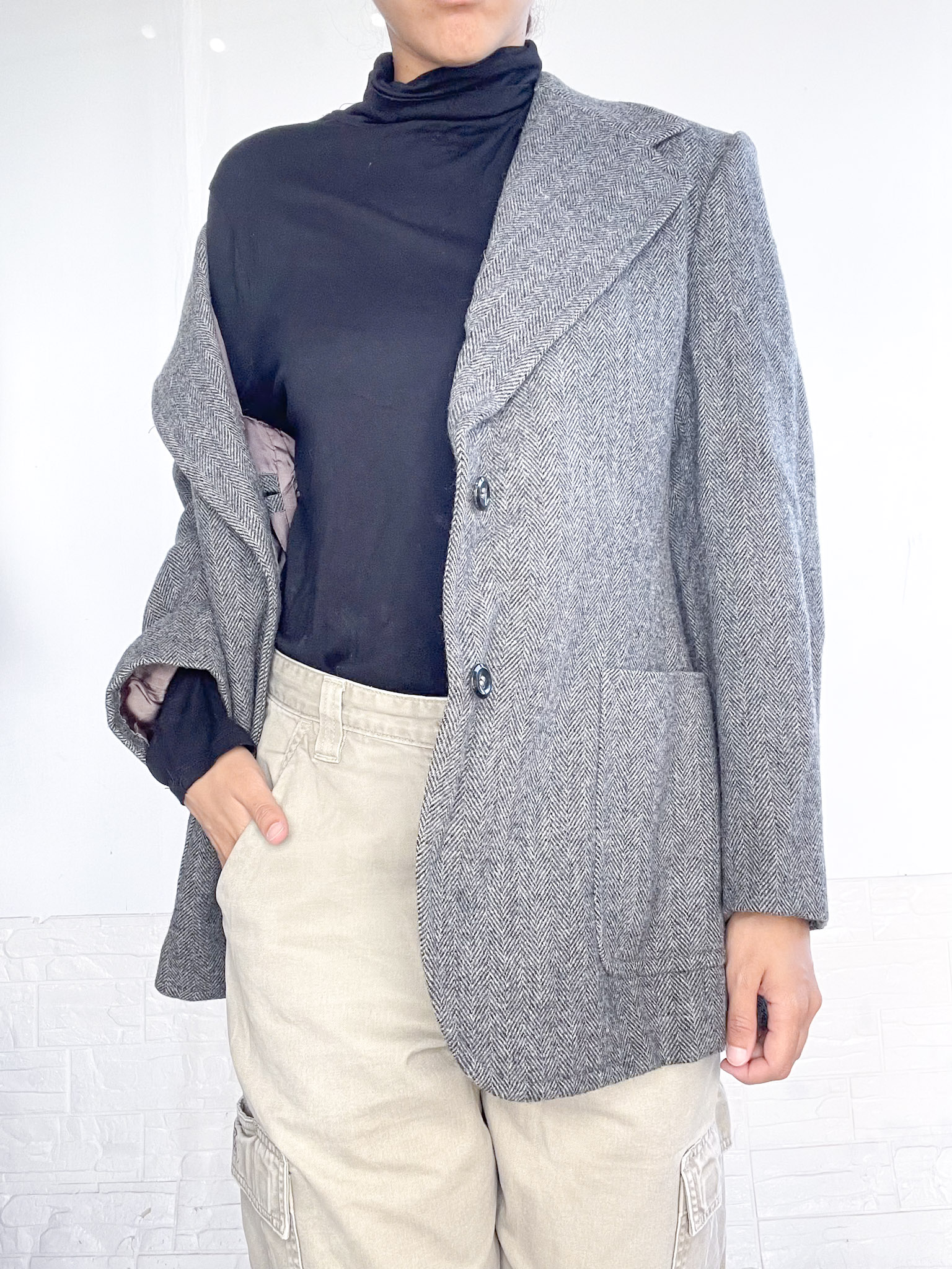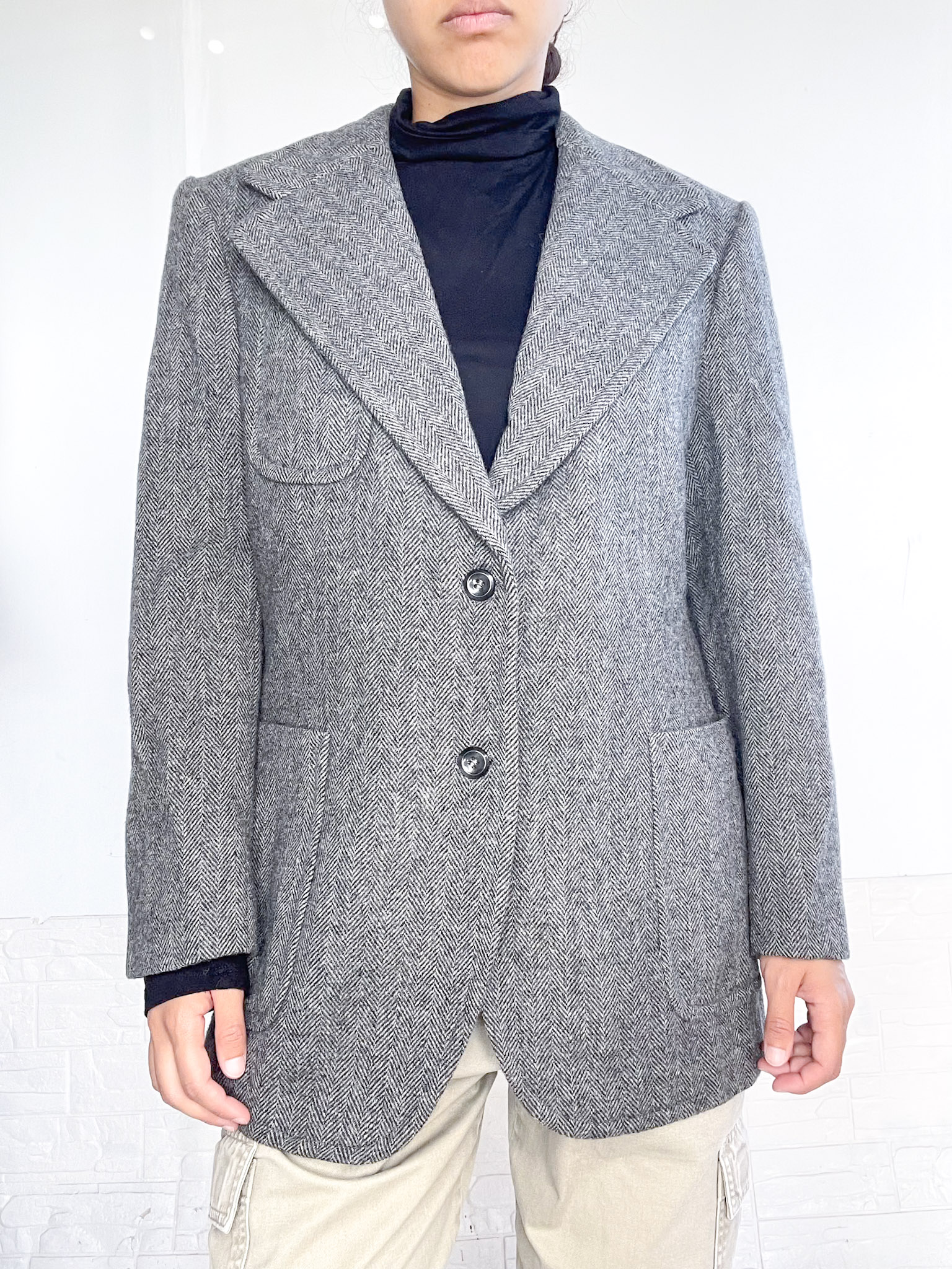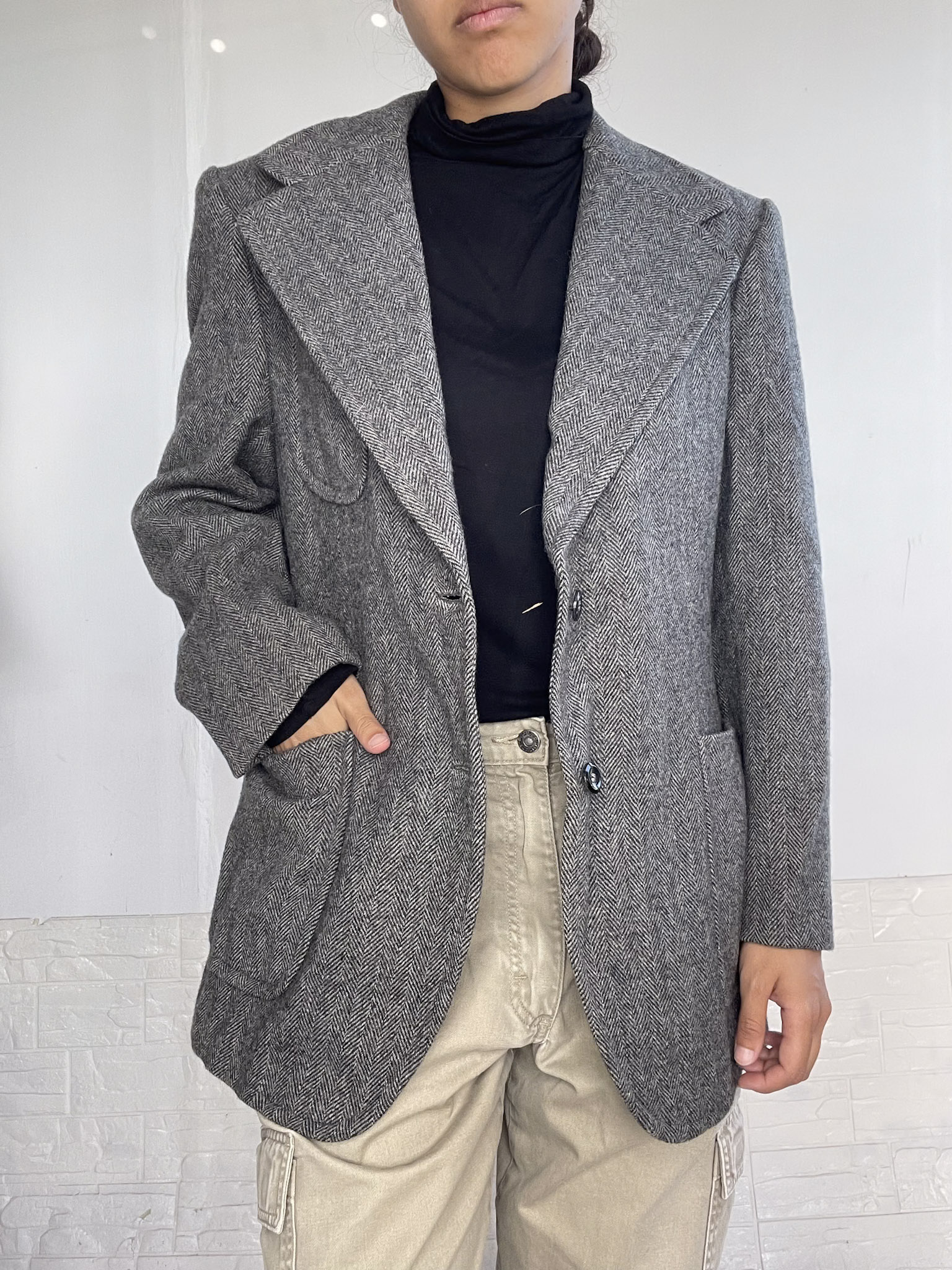 Abrigo tipo blazer oversized de paño en color gris