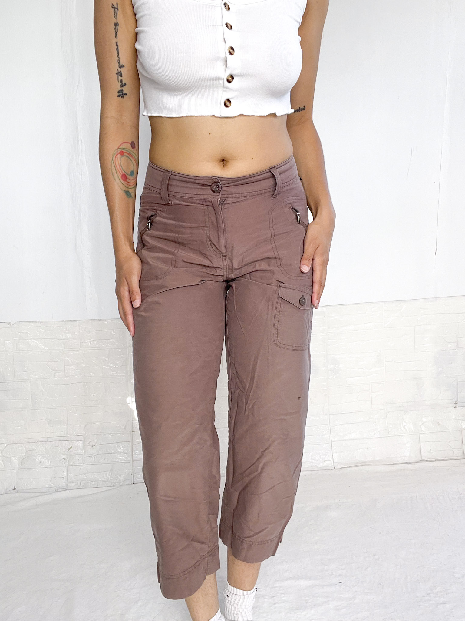 Bermuda de nylon en color marrón