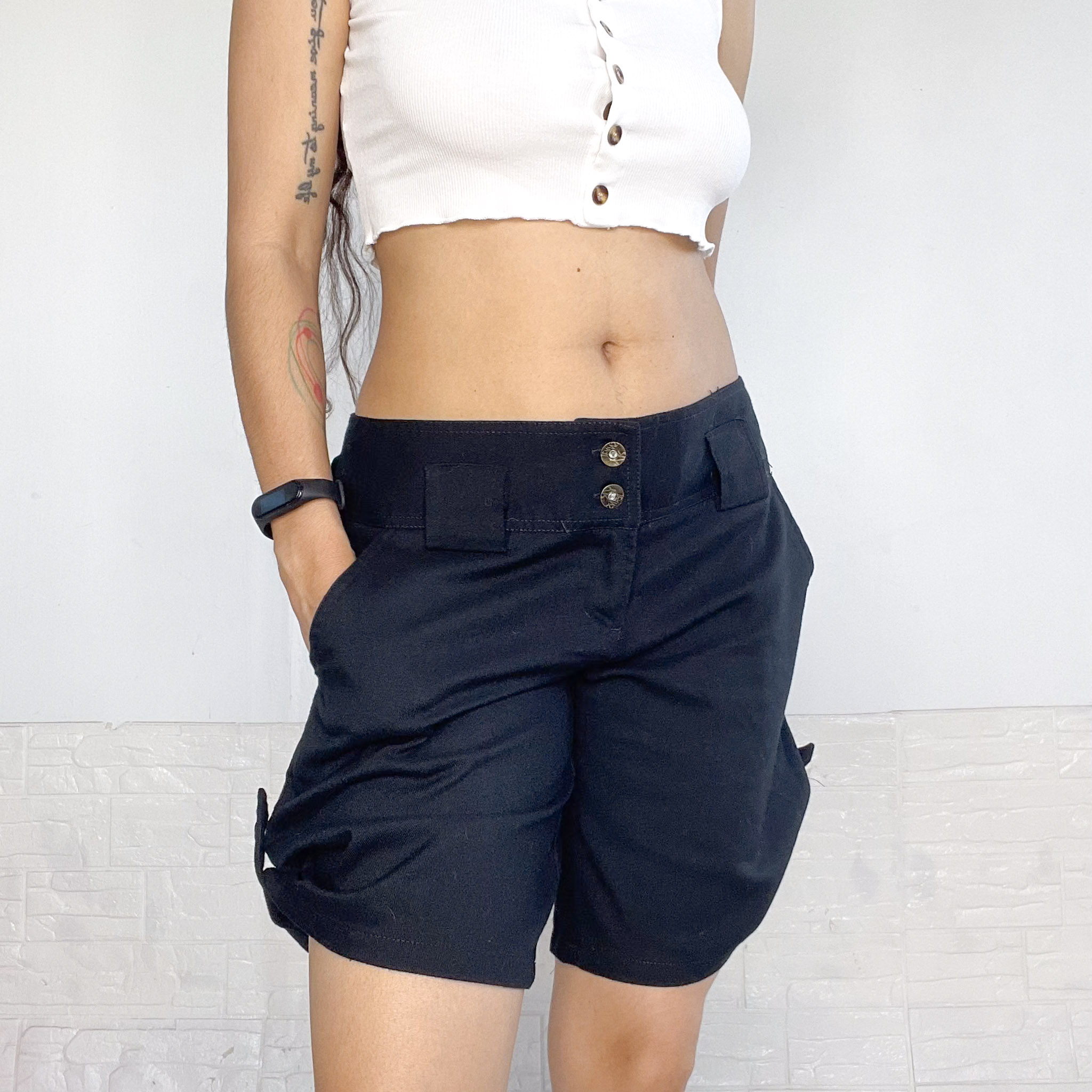 Bermuda en color negro, tiro bajo.