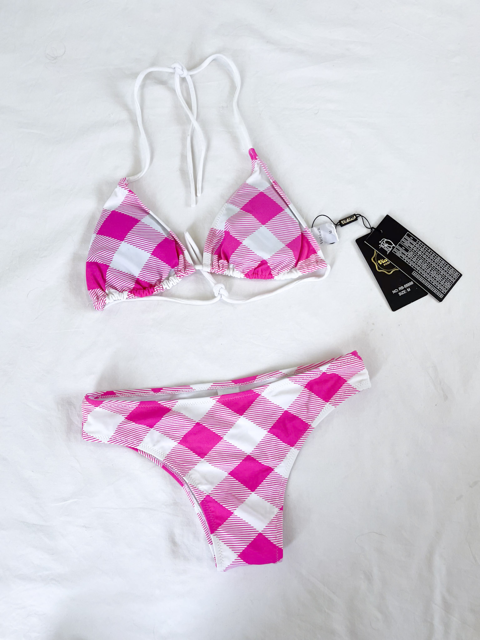 Bikini acuadrille en color rosado y blanco nuevo con entiqueta