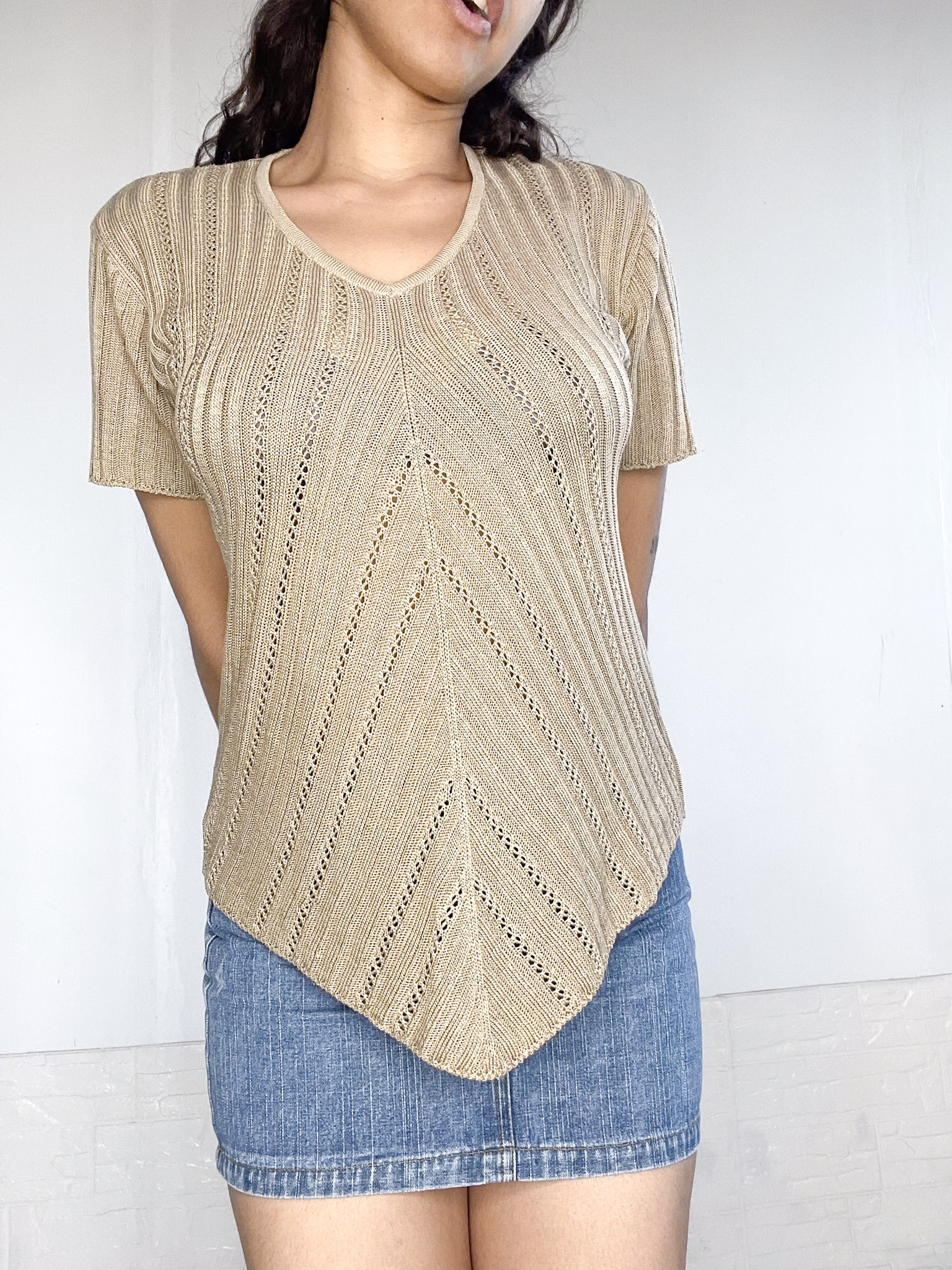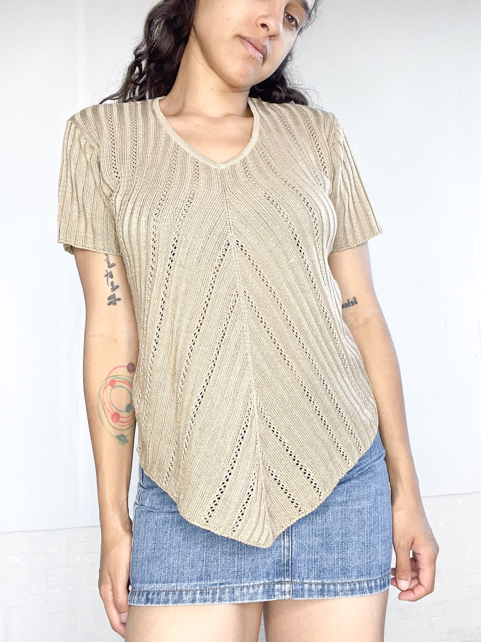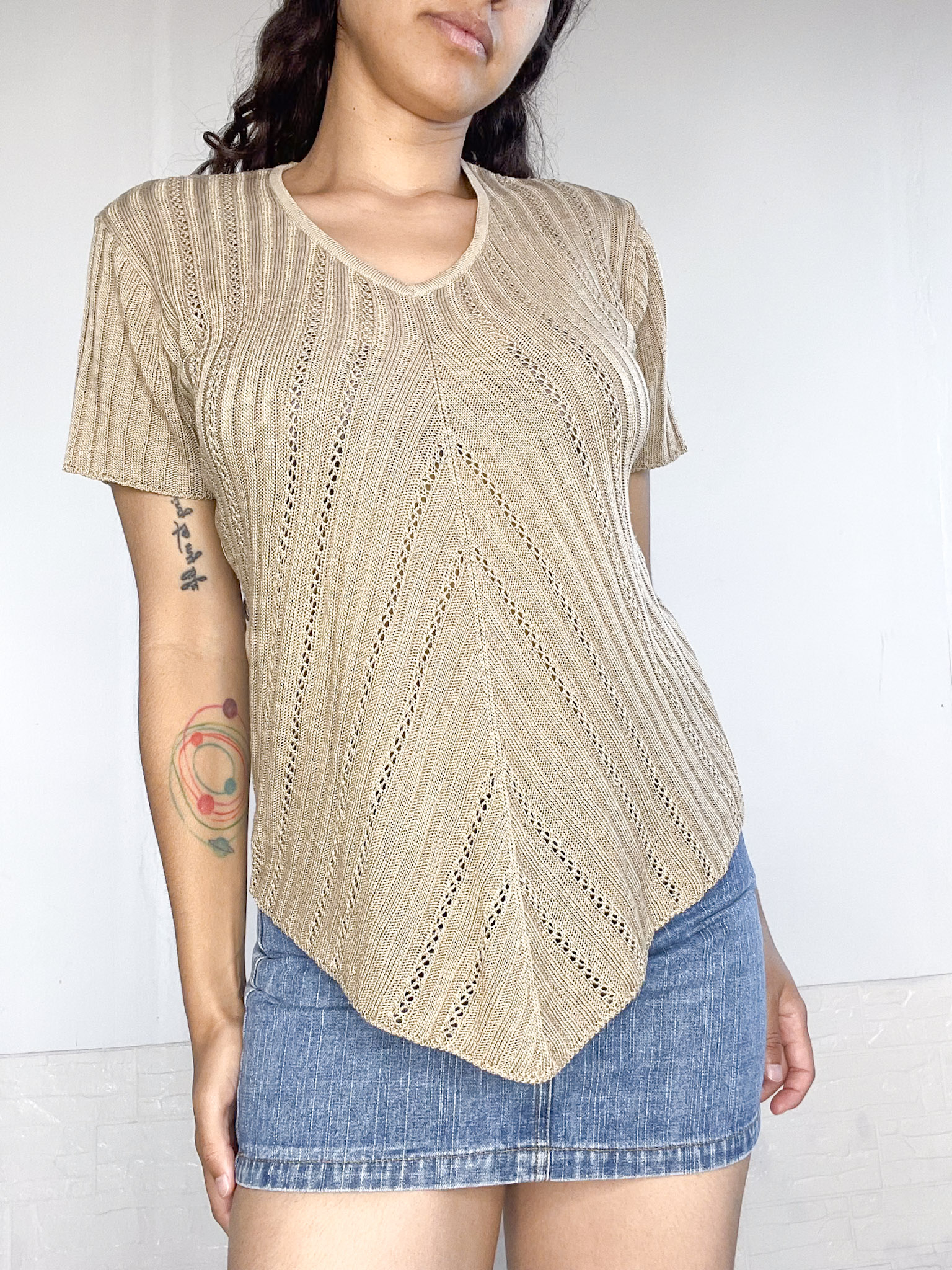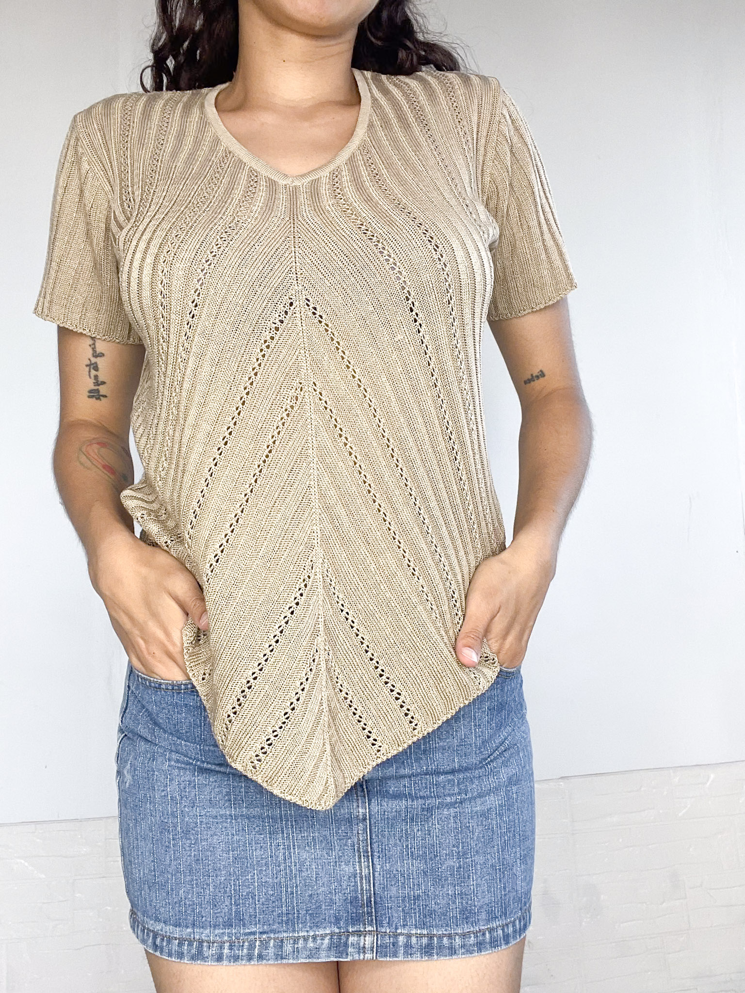 Bucito tejido en color marrón manga corta. En la parte del frente termina en punta