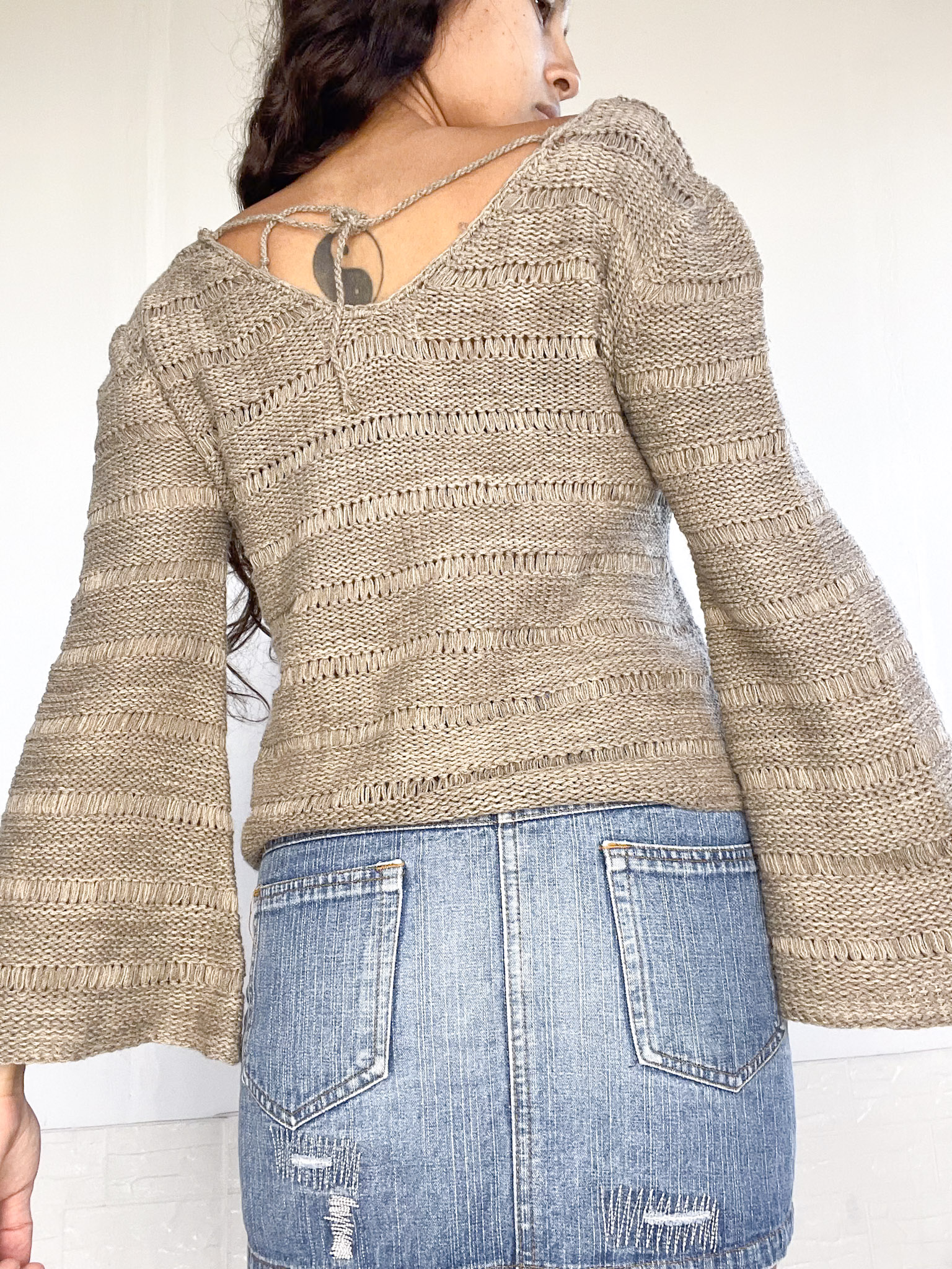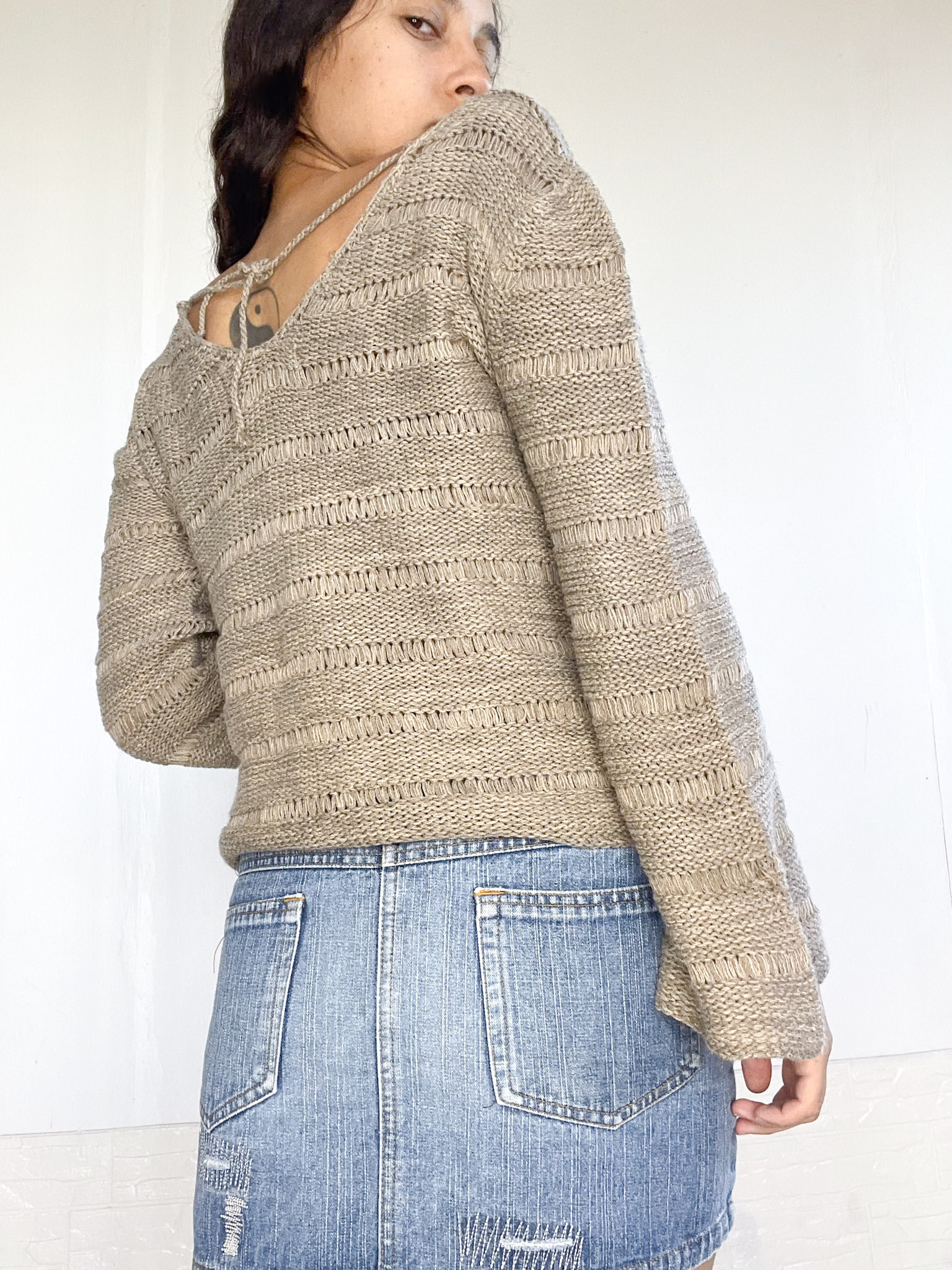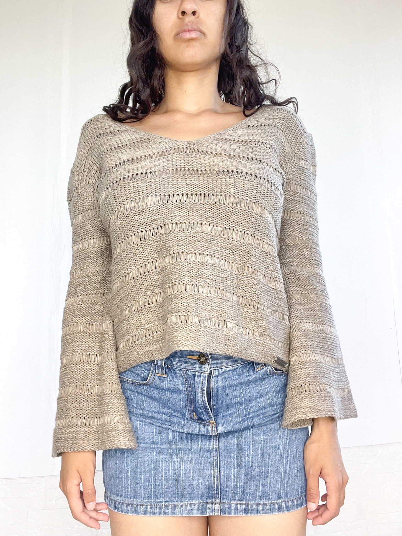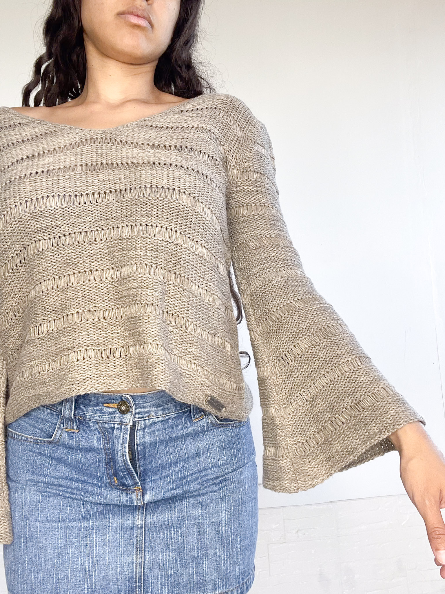 Bucito tejido en color marrón jaspeado. Mangas anchas
