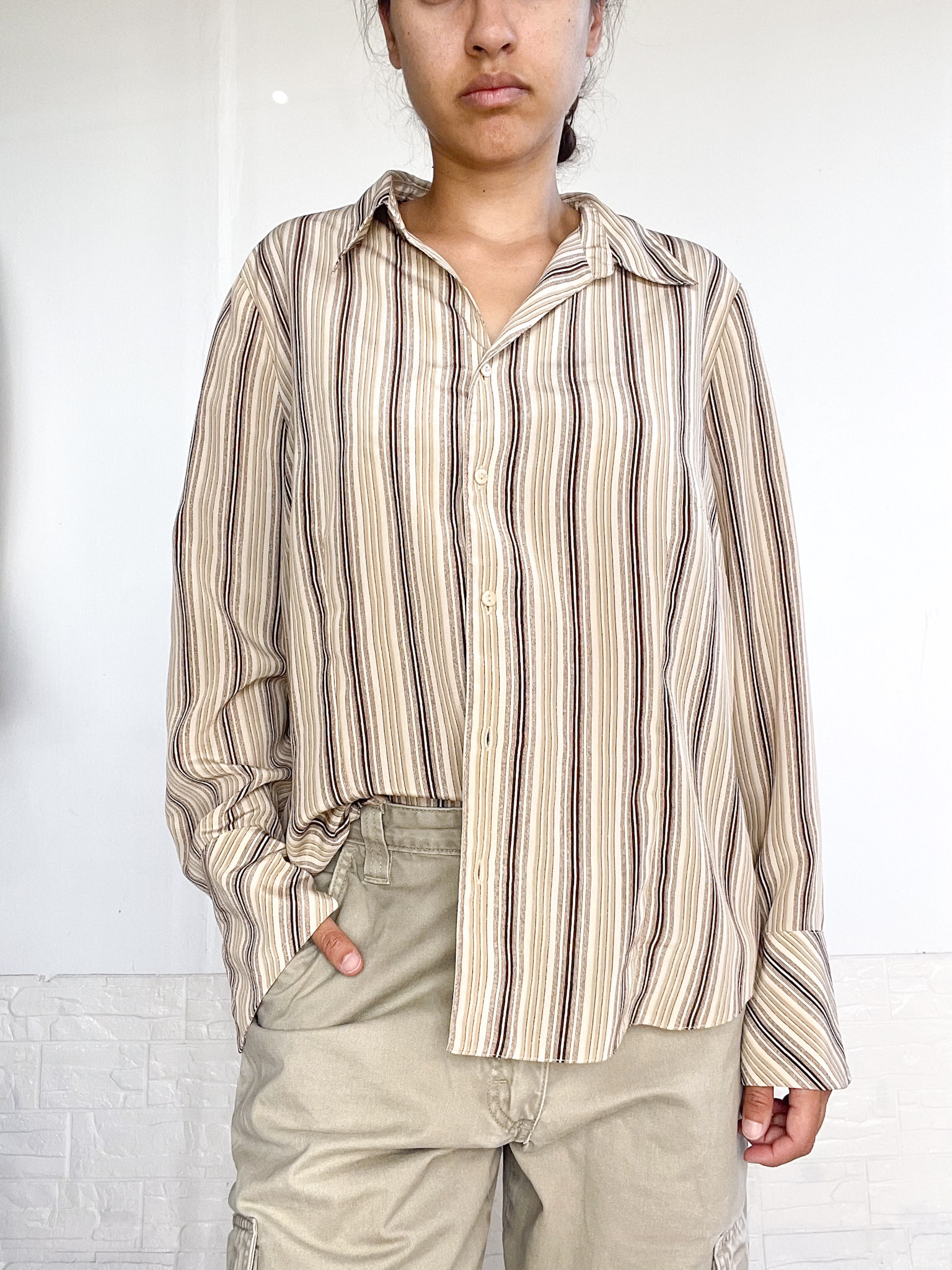 Camisa a rayas en colores tierra