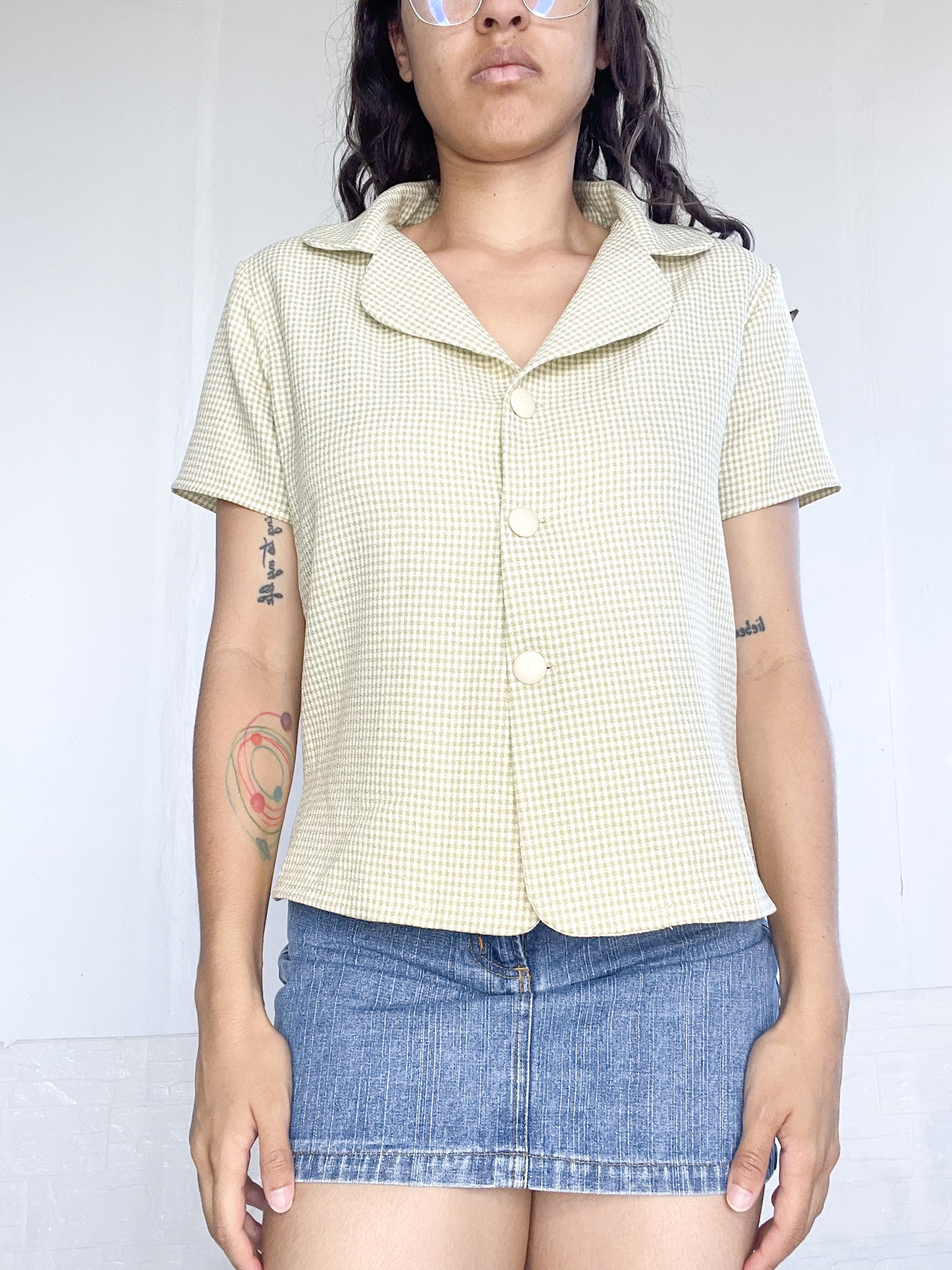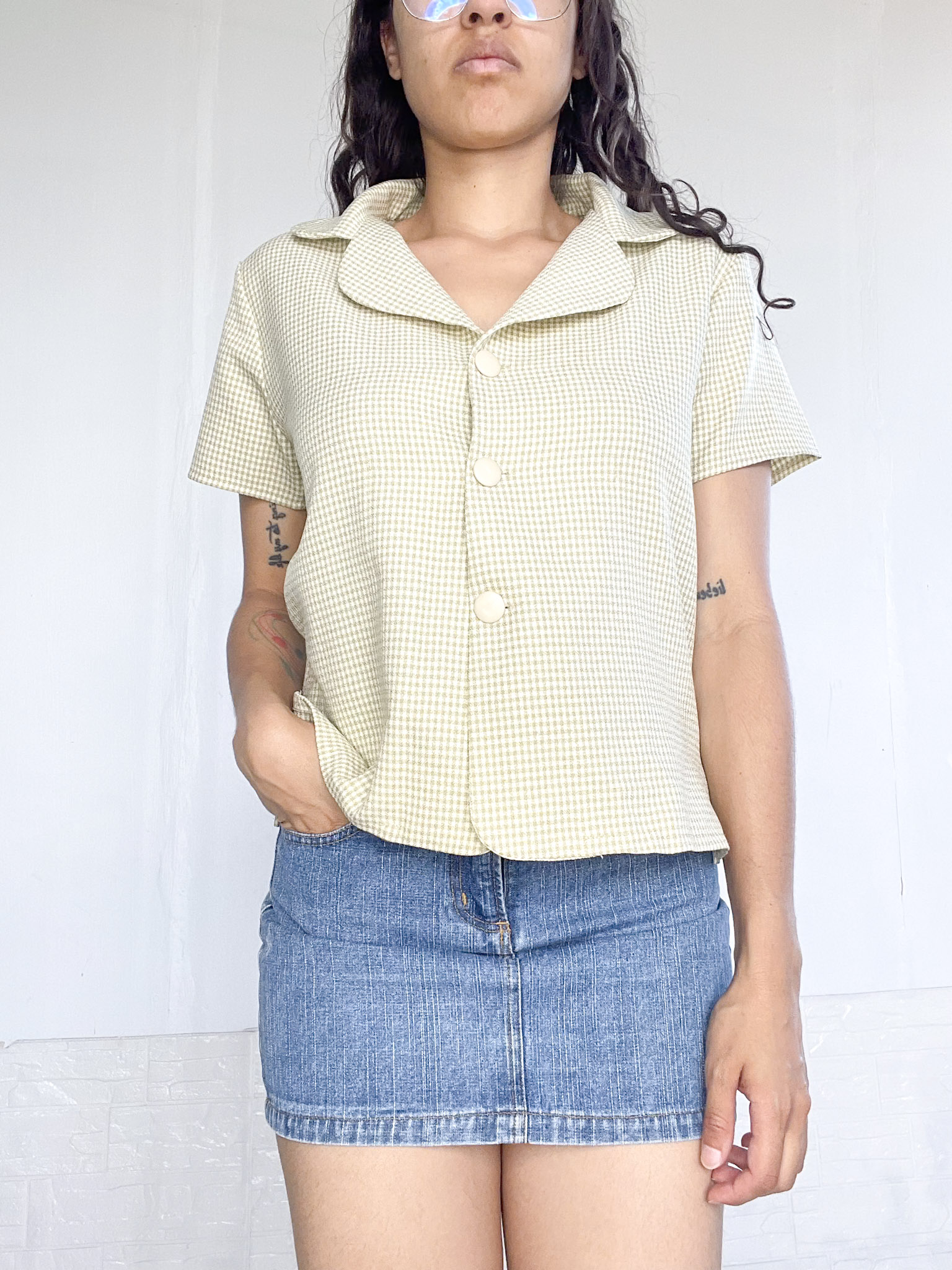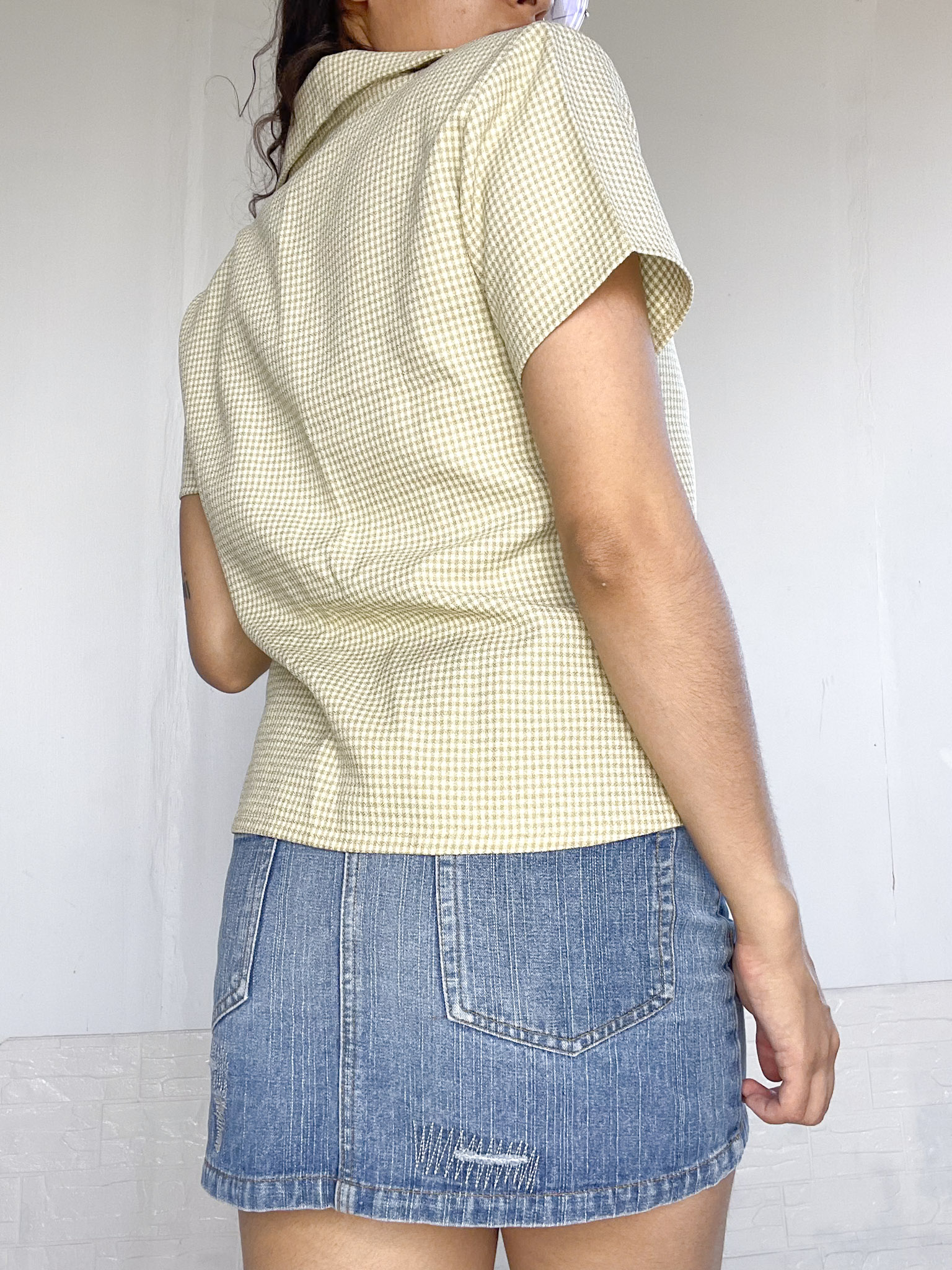 Camisa acuadrille en color blanco y verde