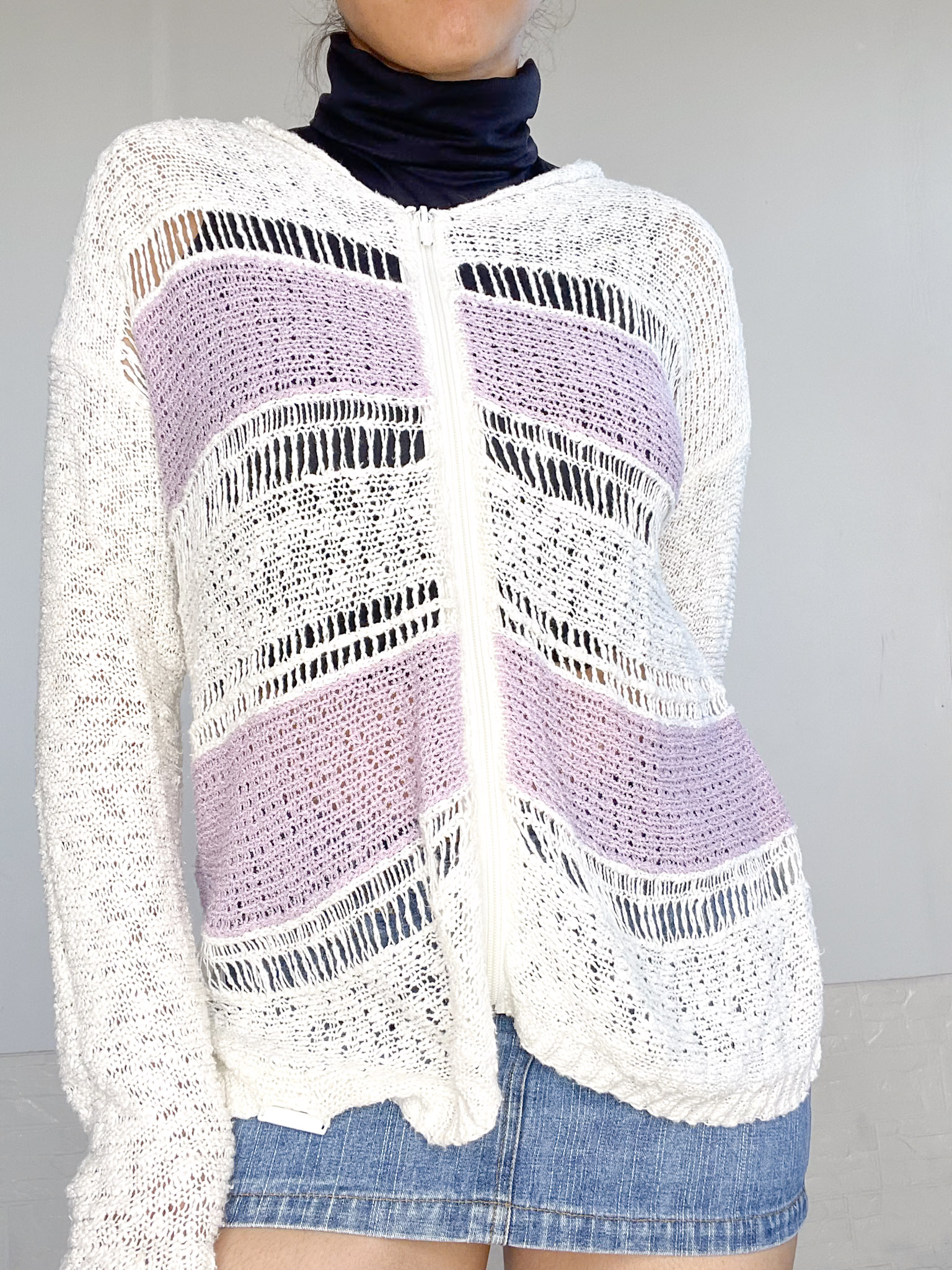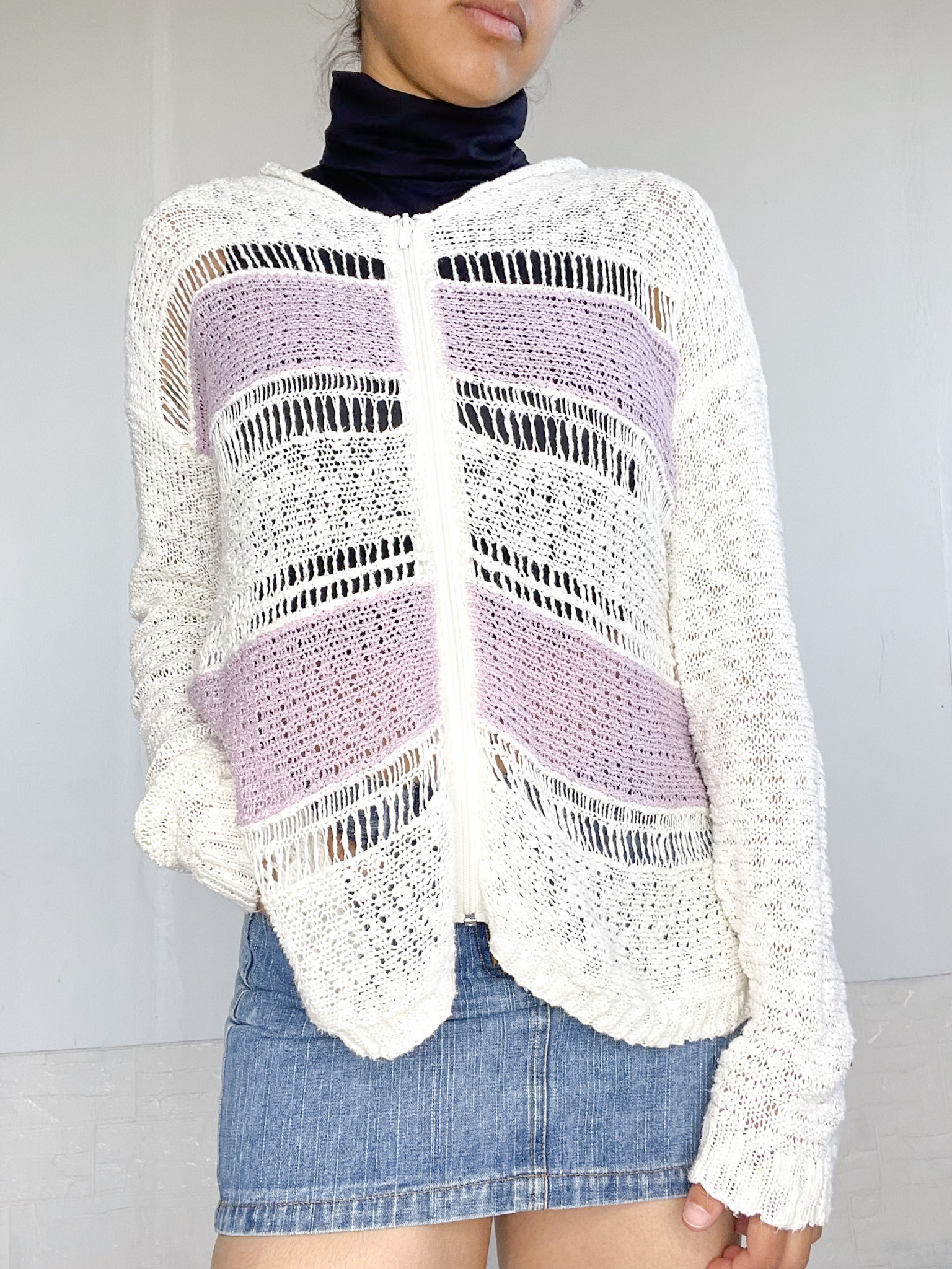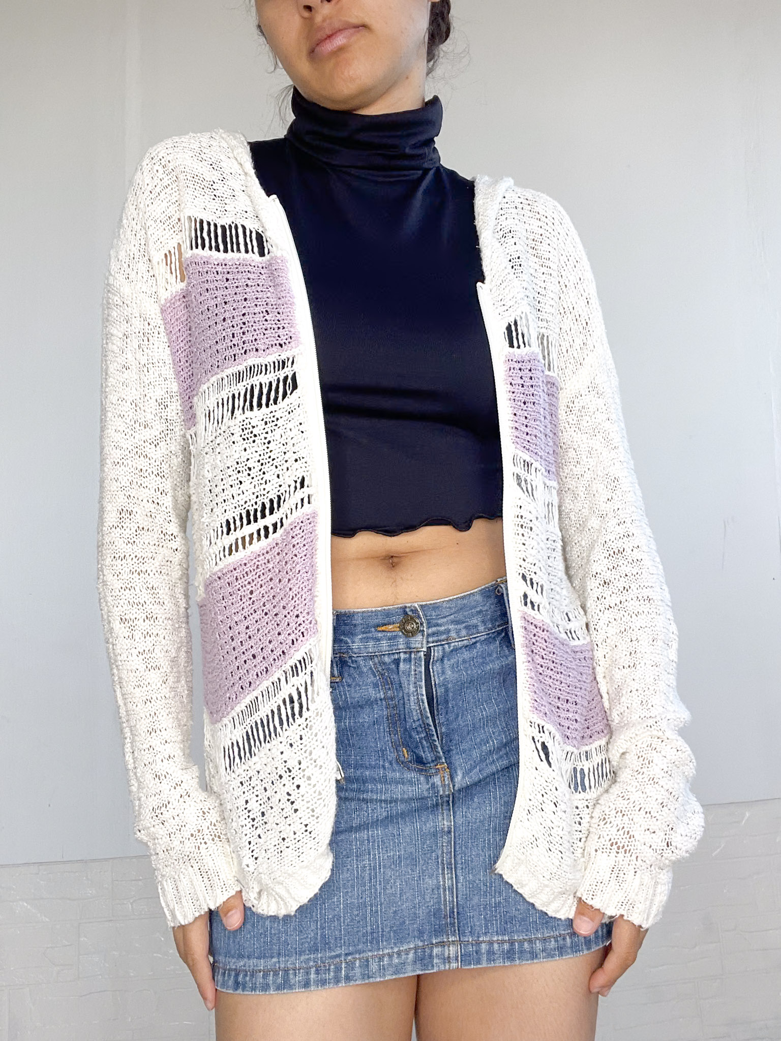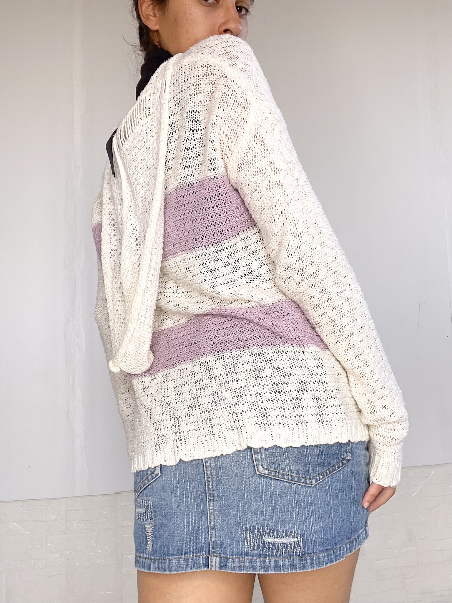 Camperita tejida en color blanco y lila