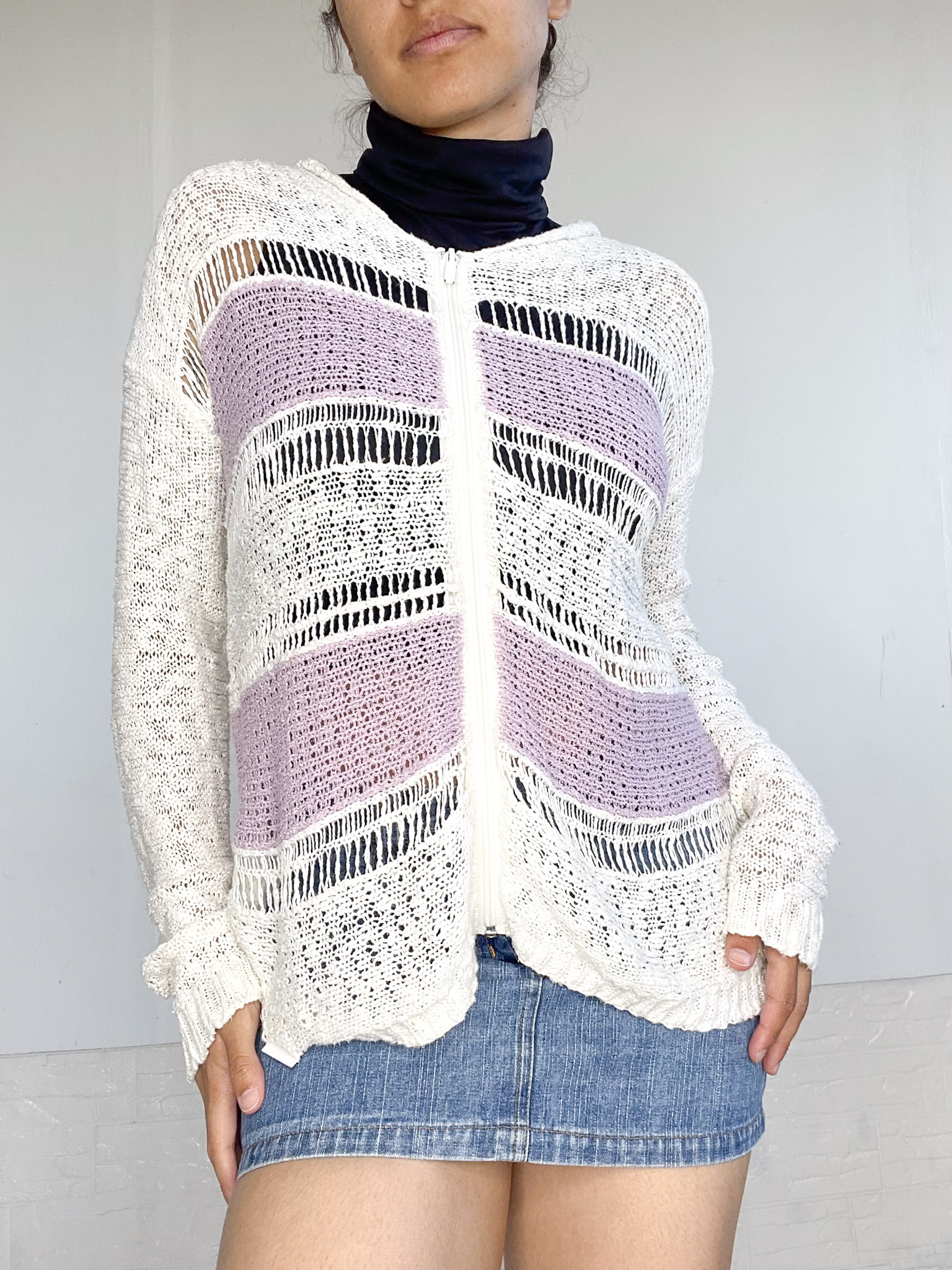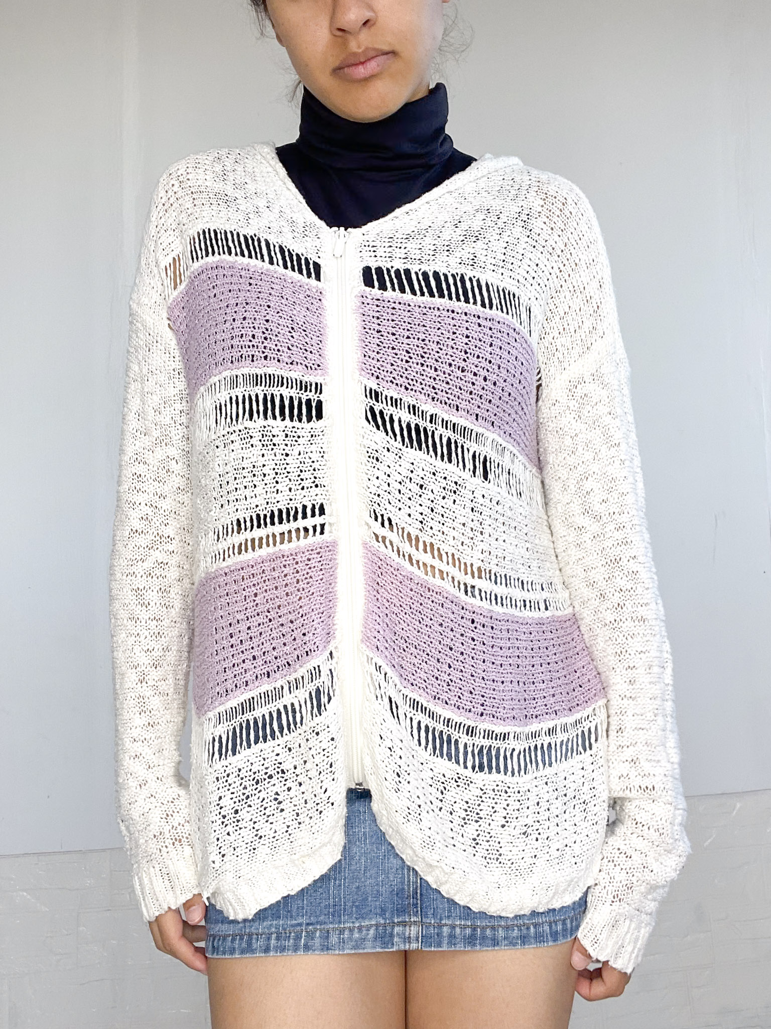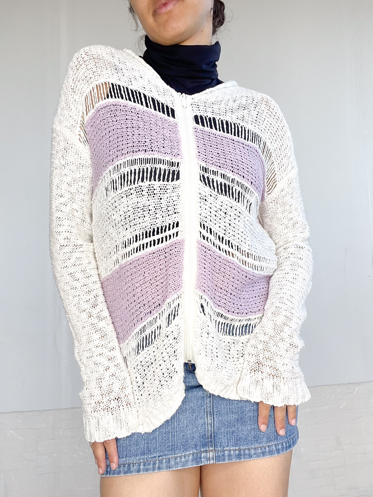 Camperita tejida en color blanco y lila