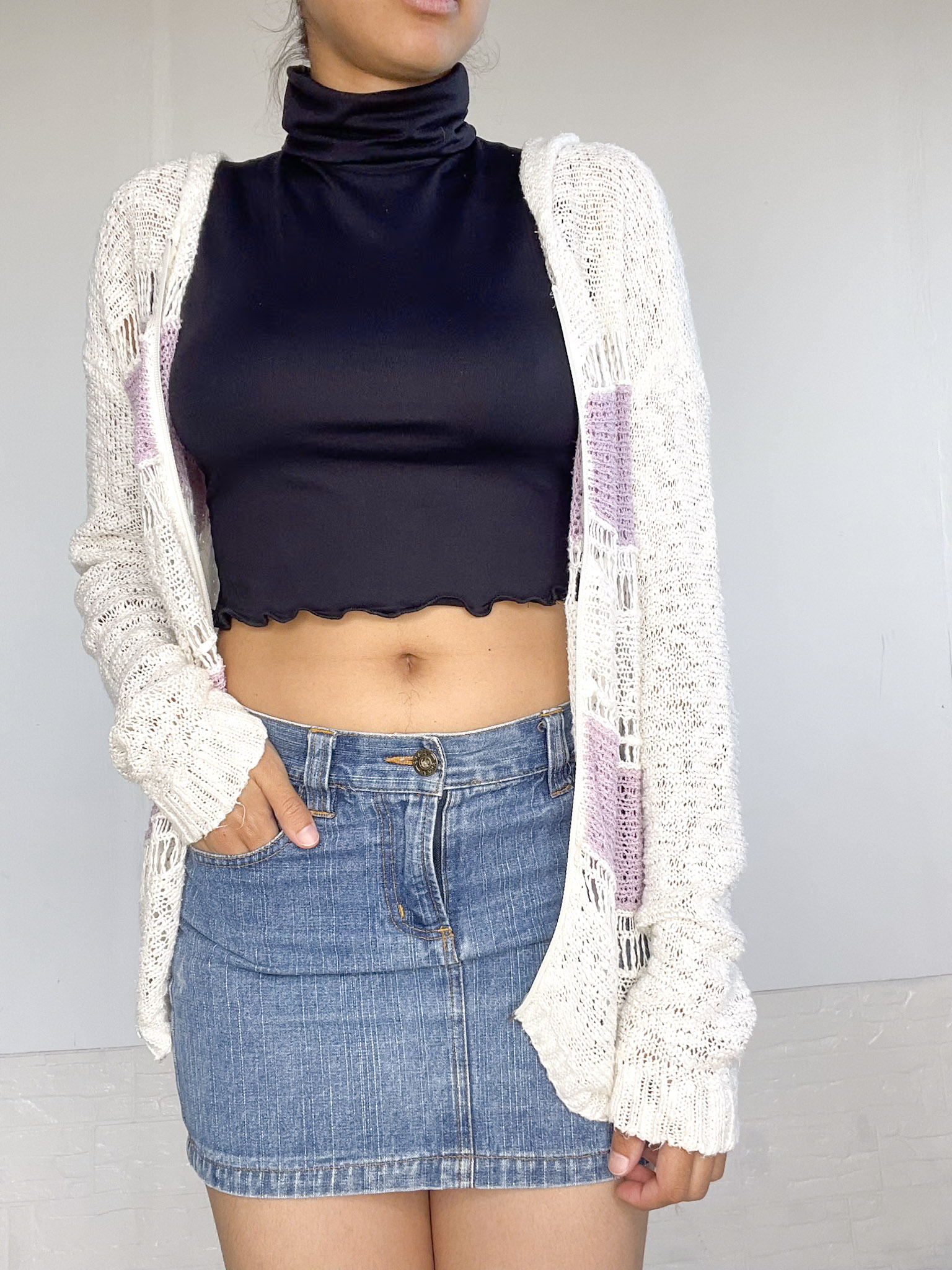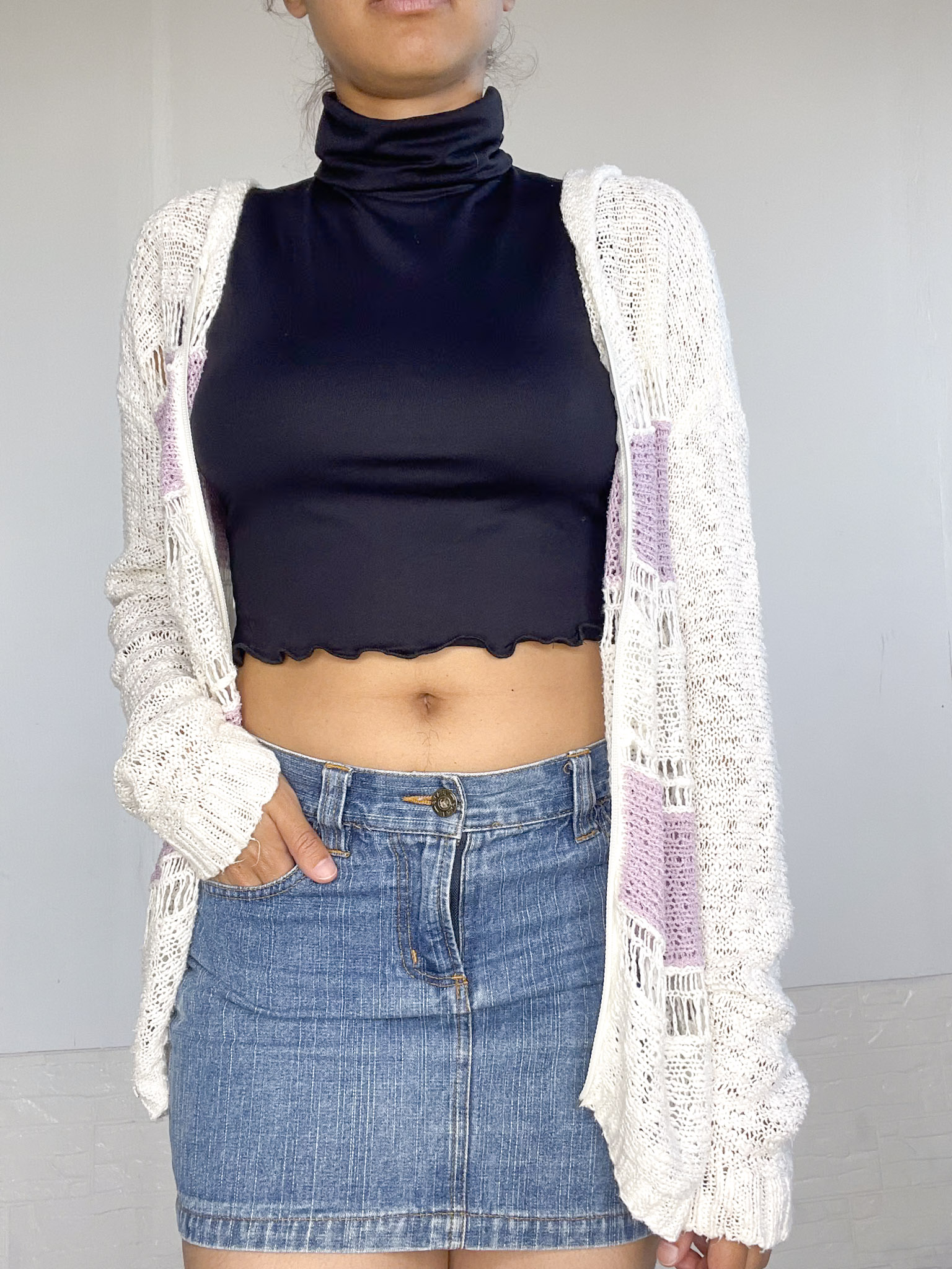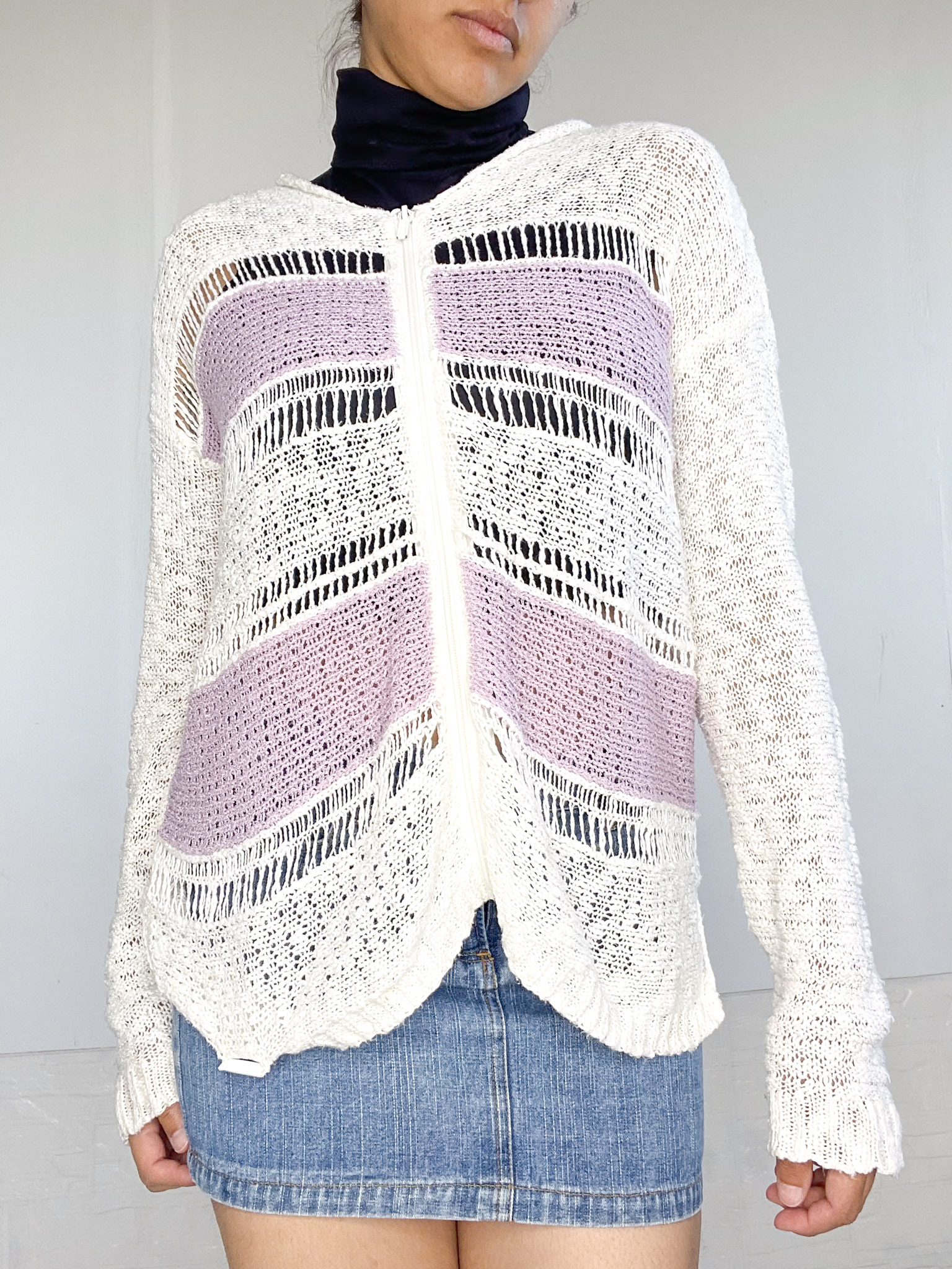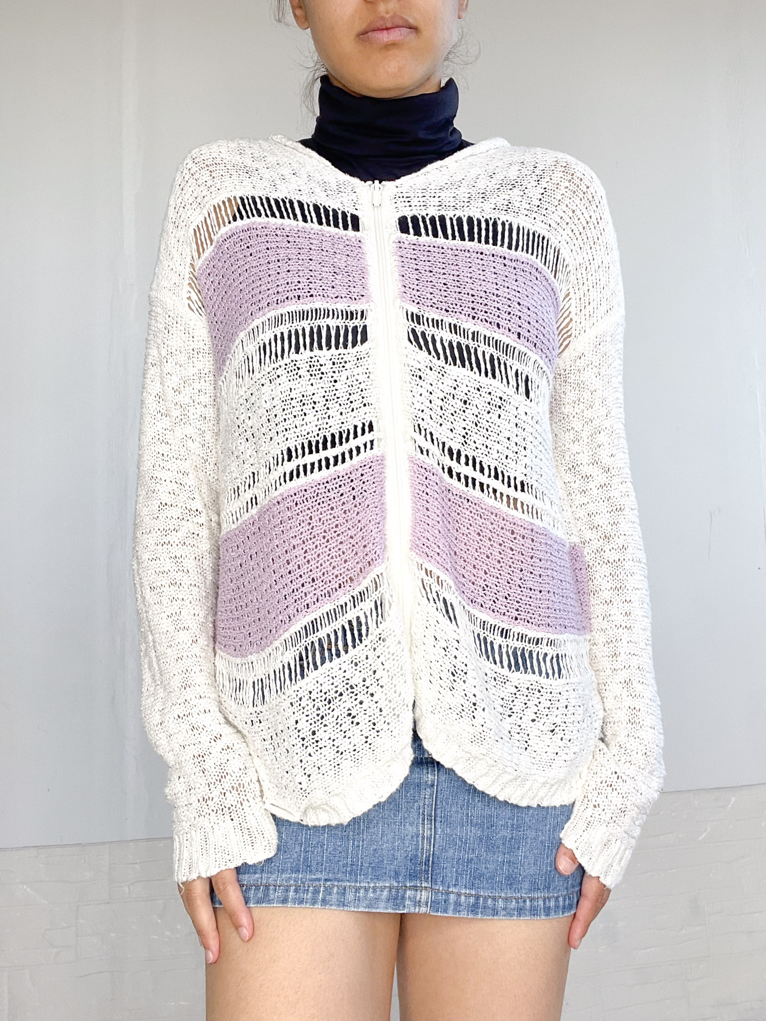 Camperita tejida en color blanco y lila