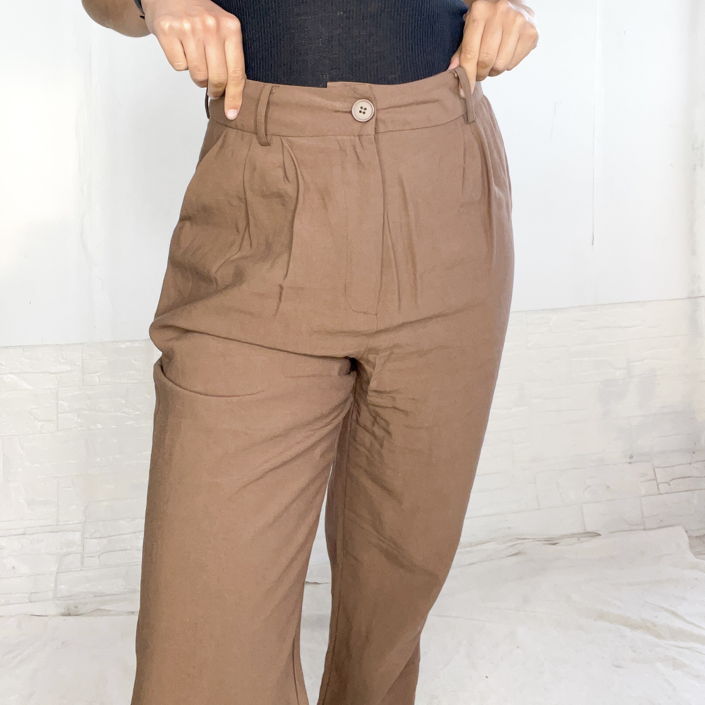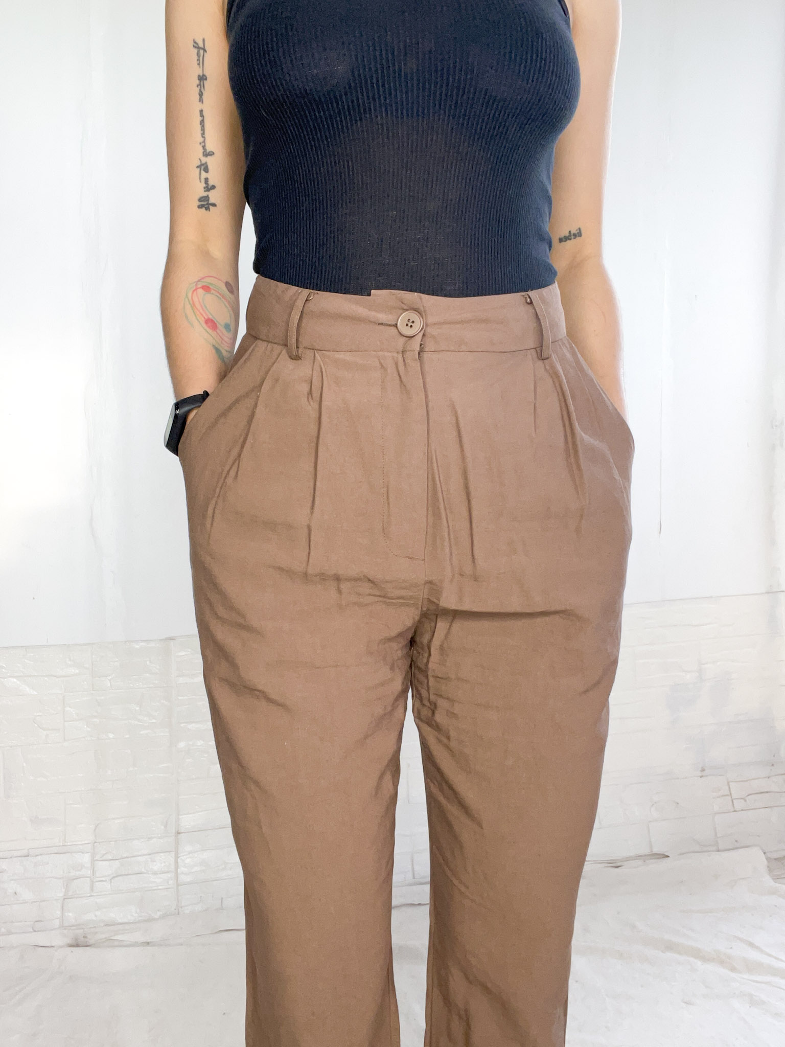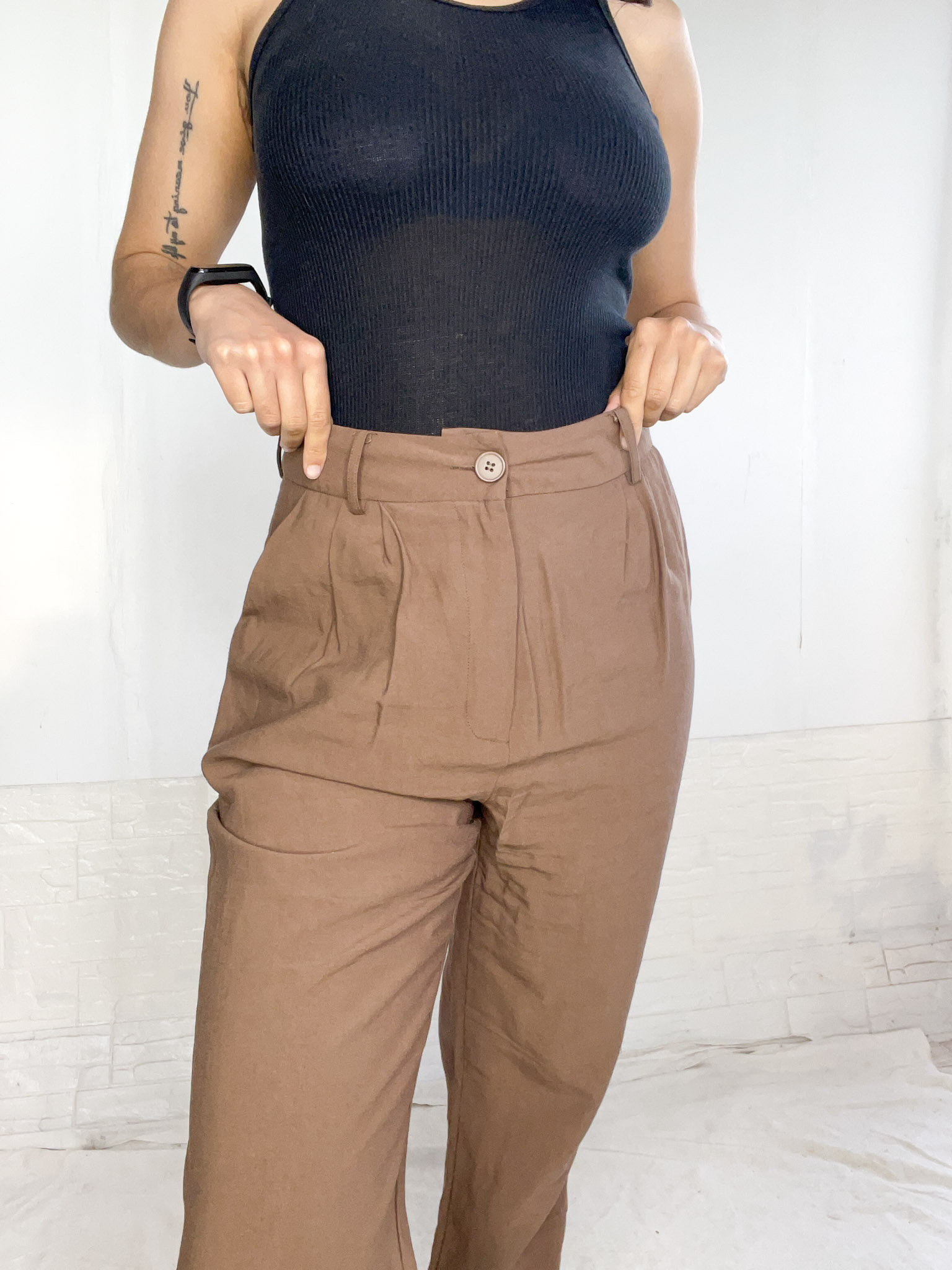 Pantalón de vestir en color marrón, tiro alto con pinzas
