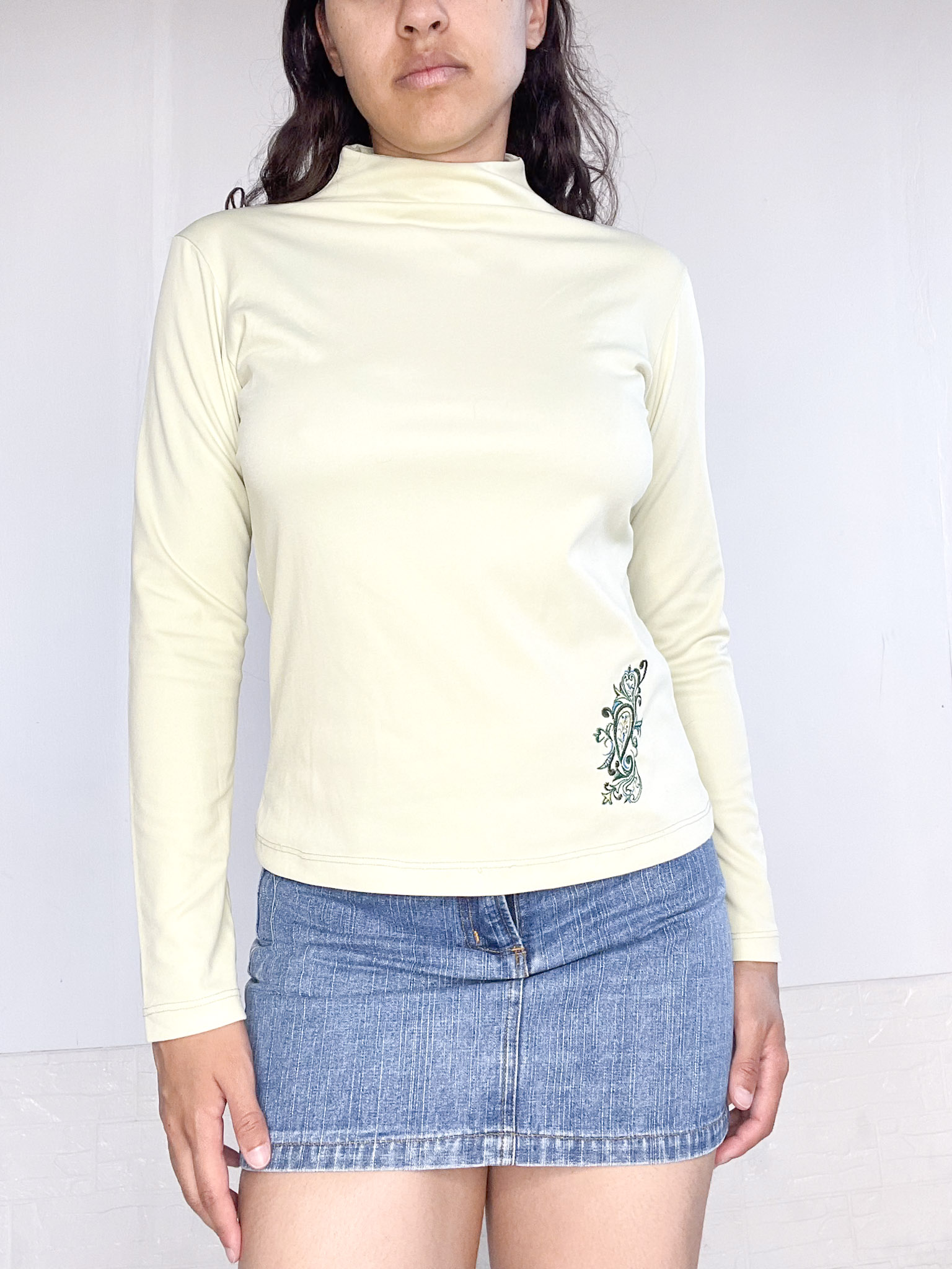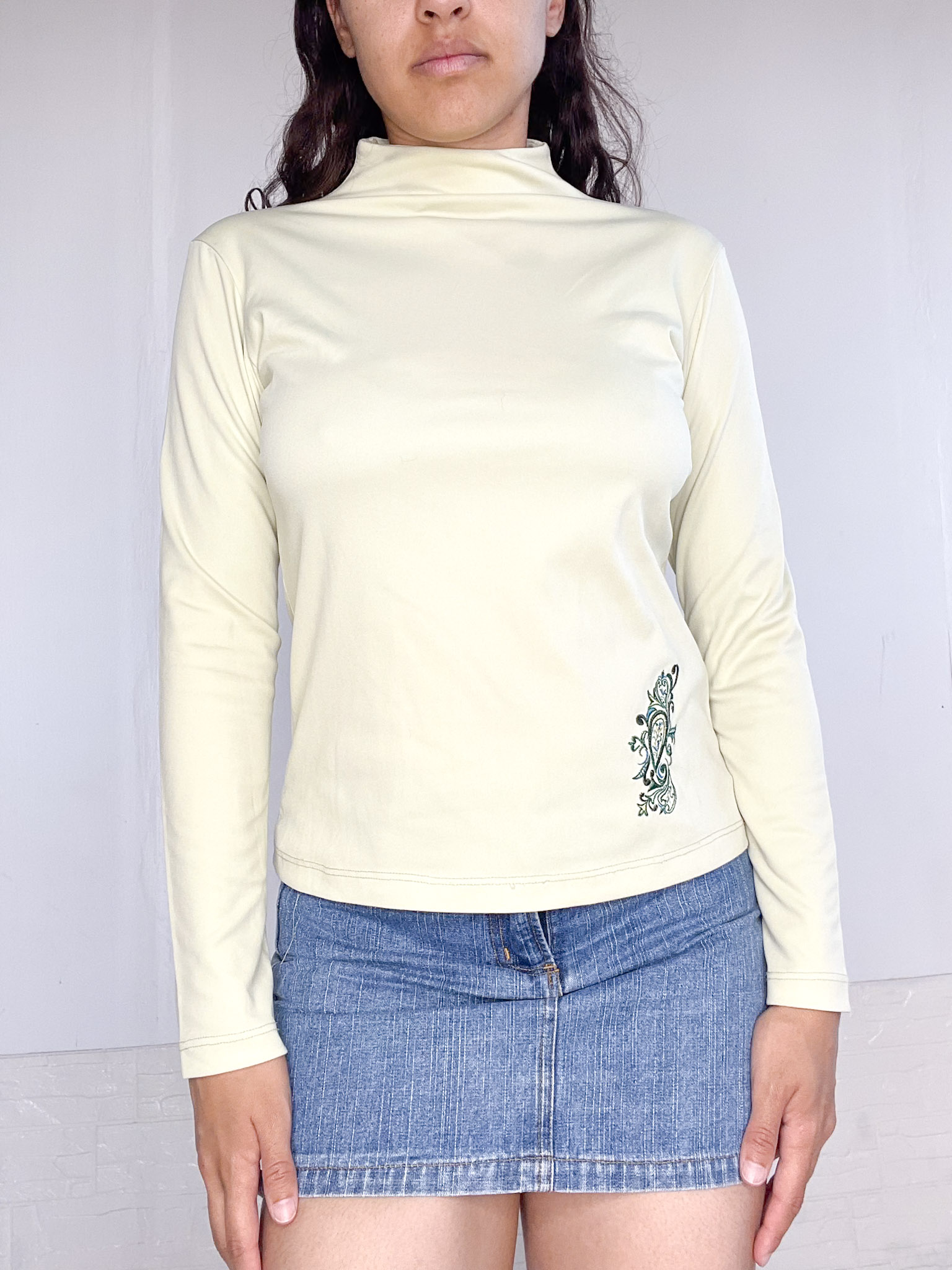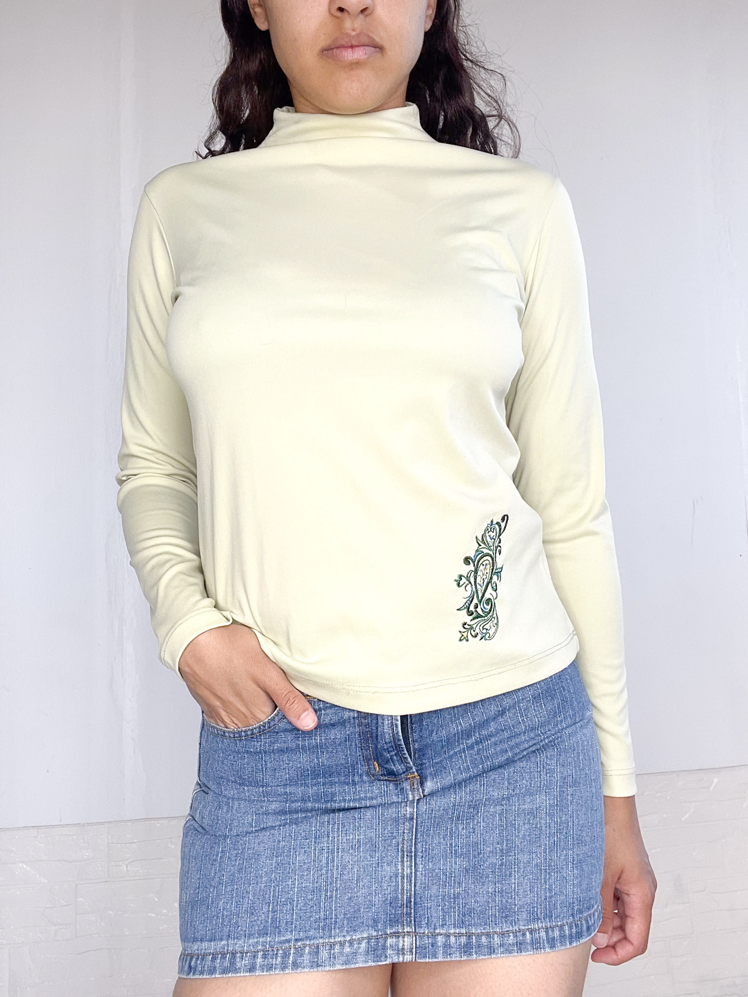 Polerita en color verde claro, al cuerpo con bordado