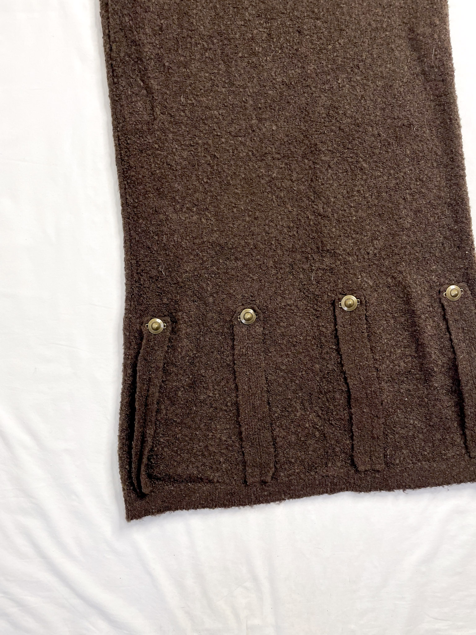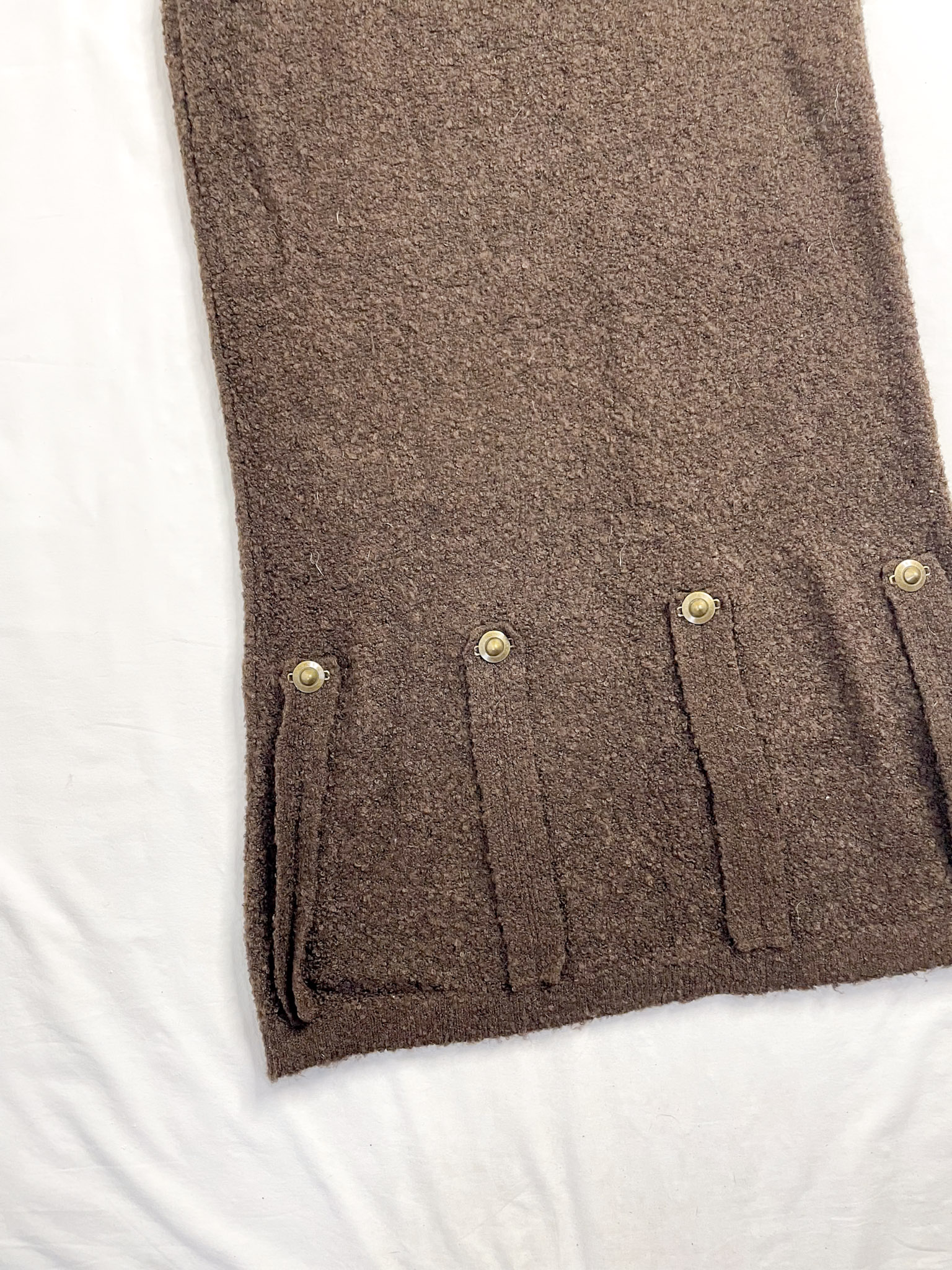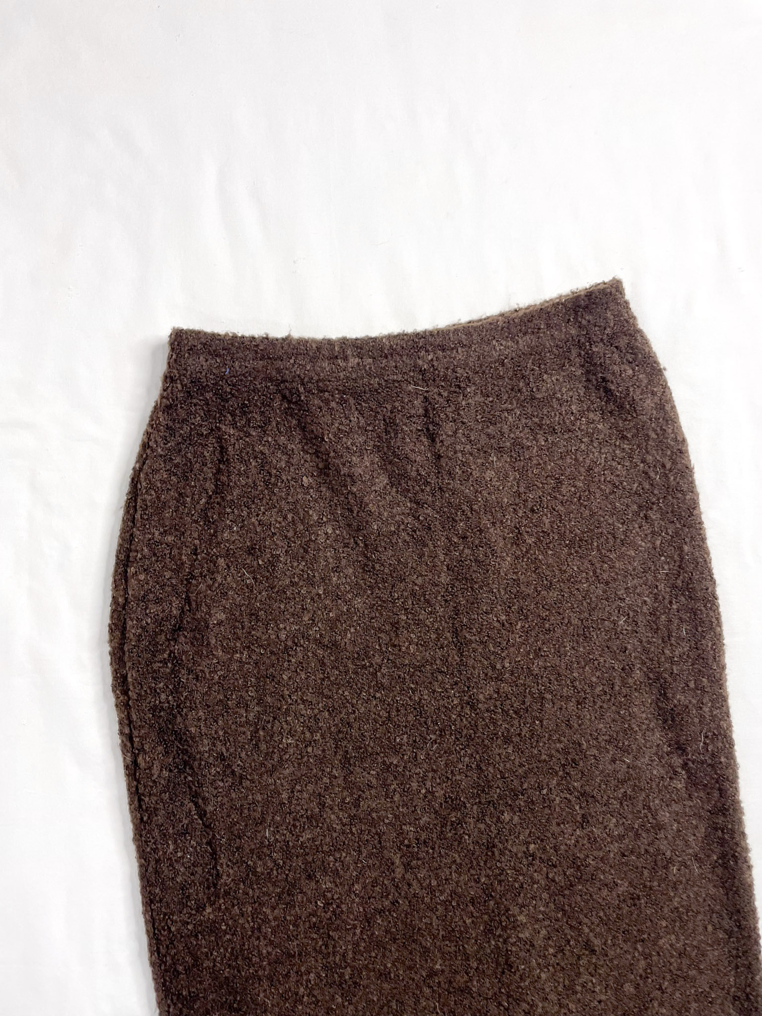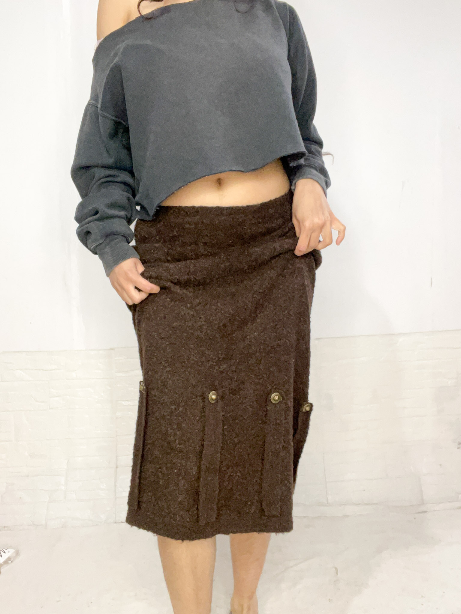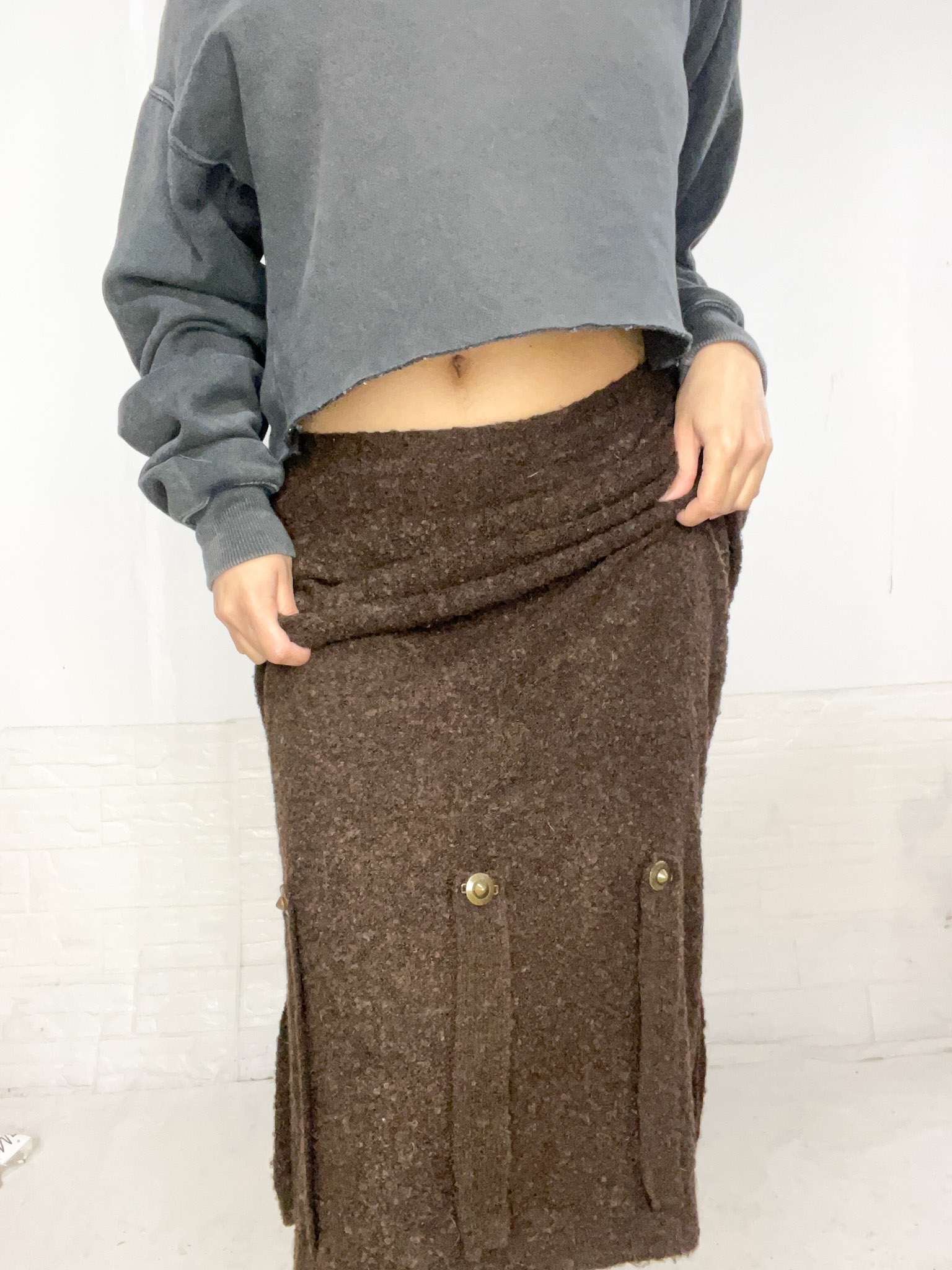 Pollera tejida en color marrón. Elastizada con elástico en la cintura