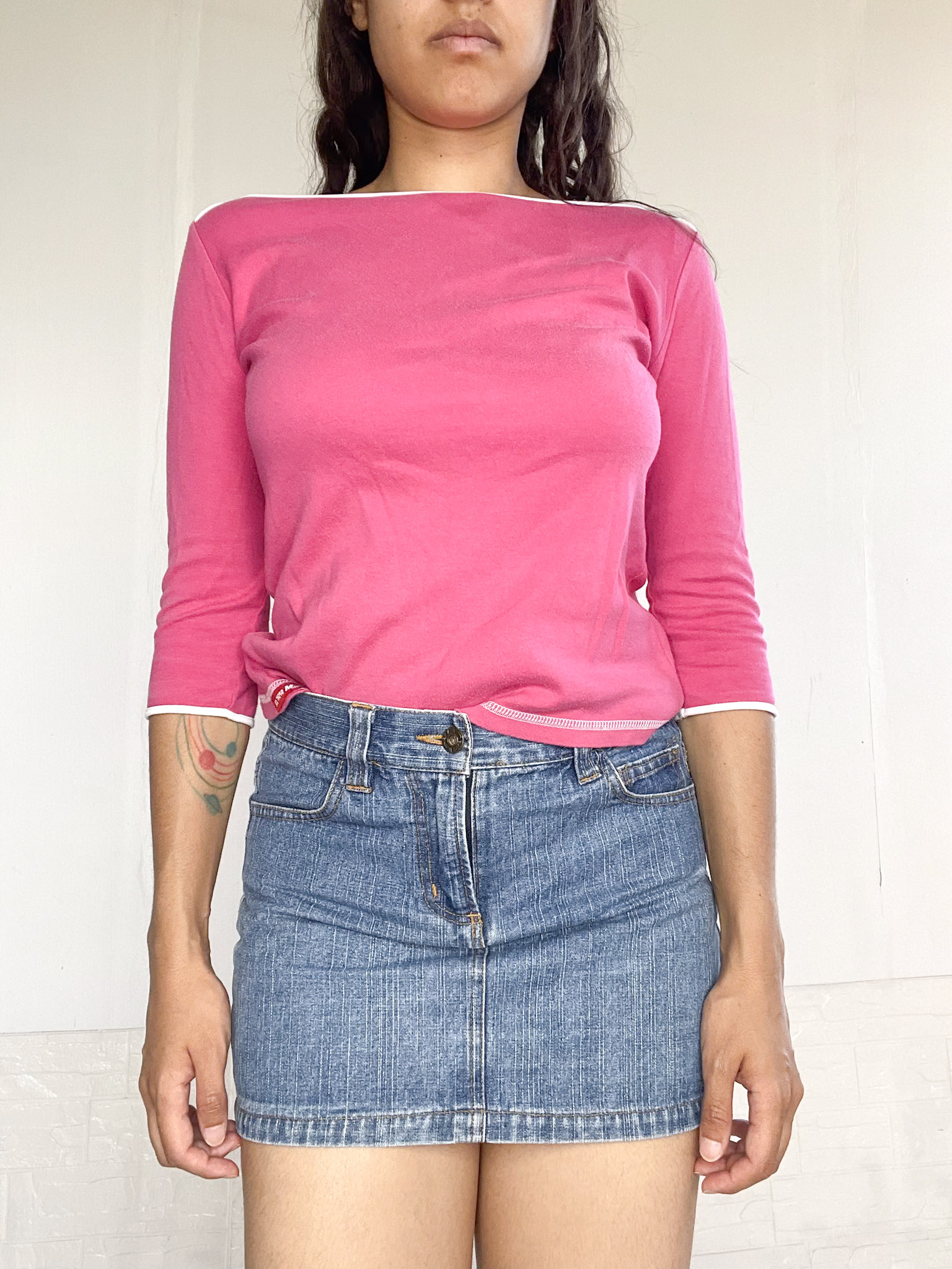 Reme manga 3/4 en color rosado con detalles en blanco