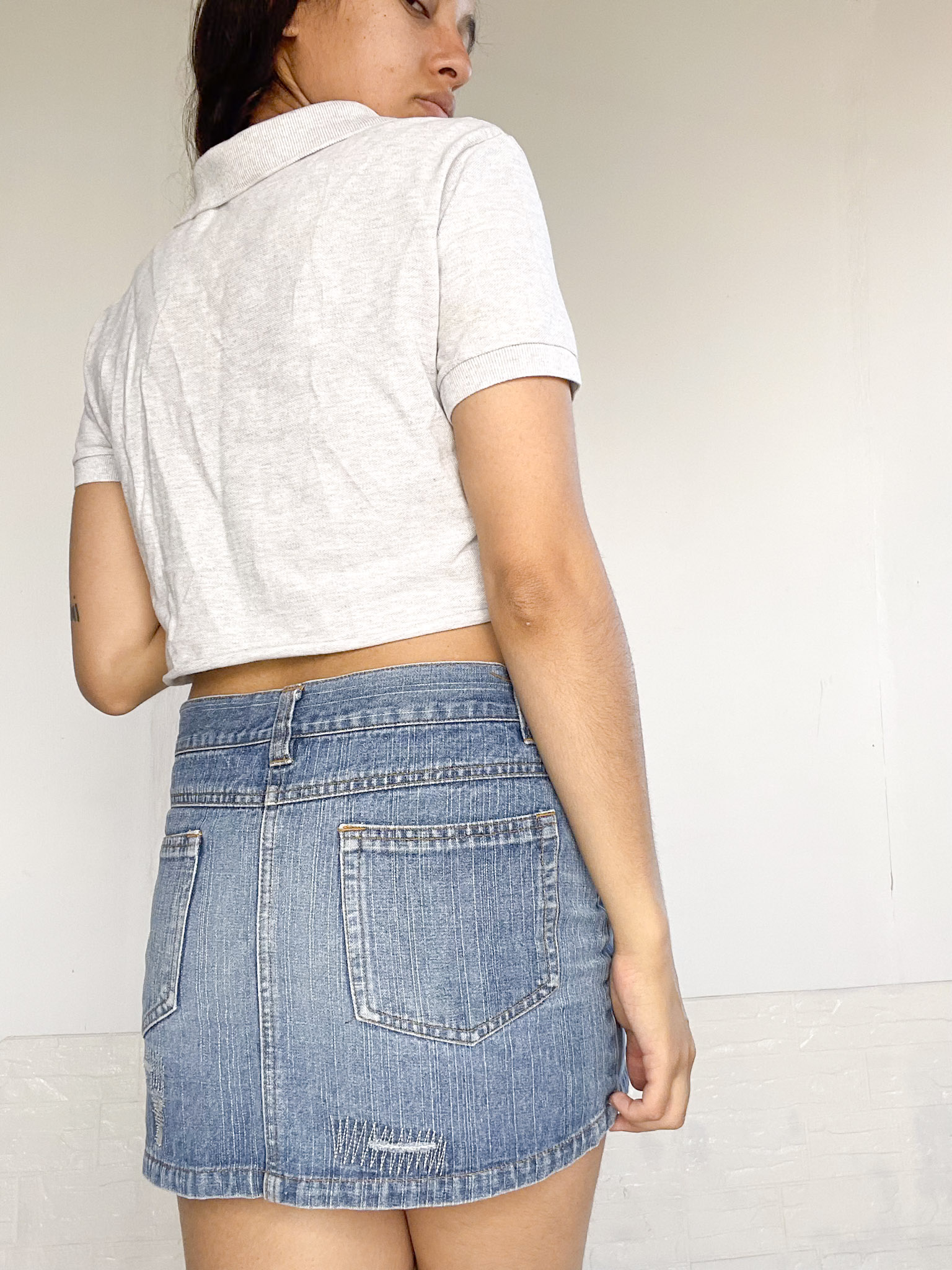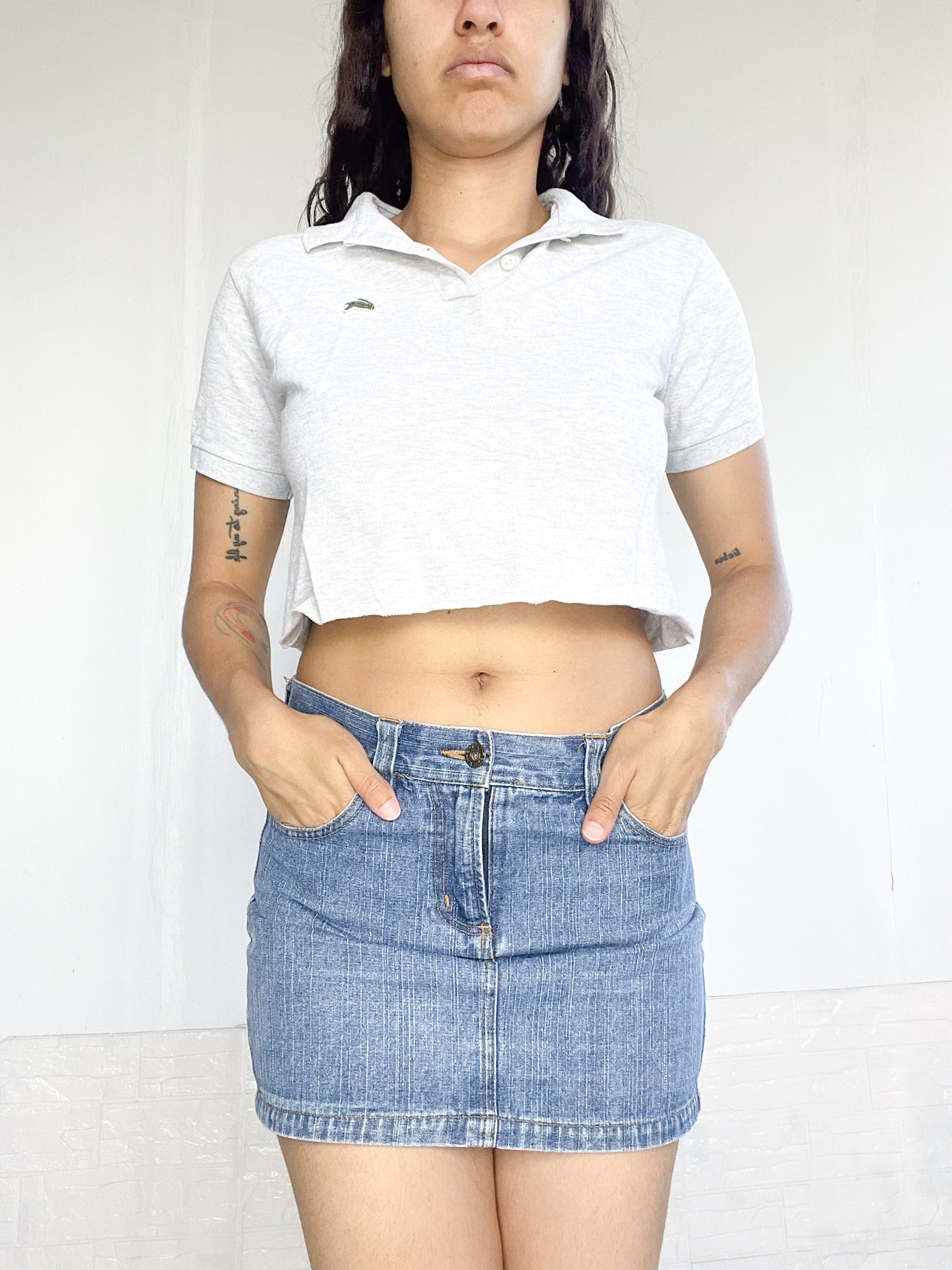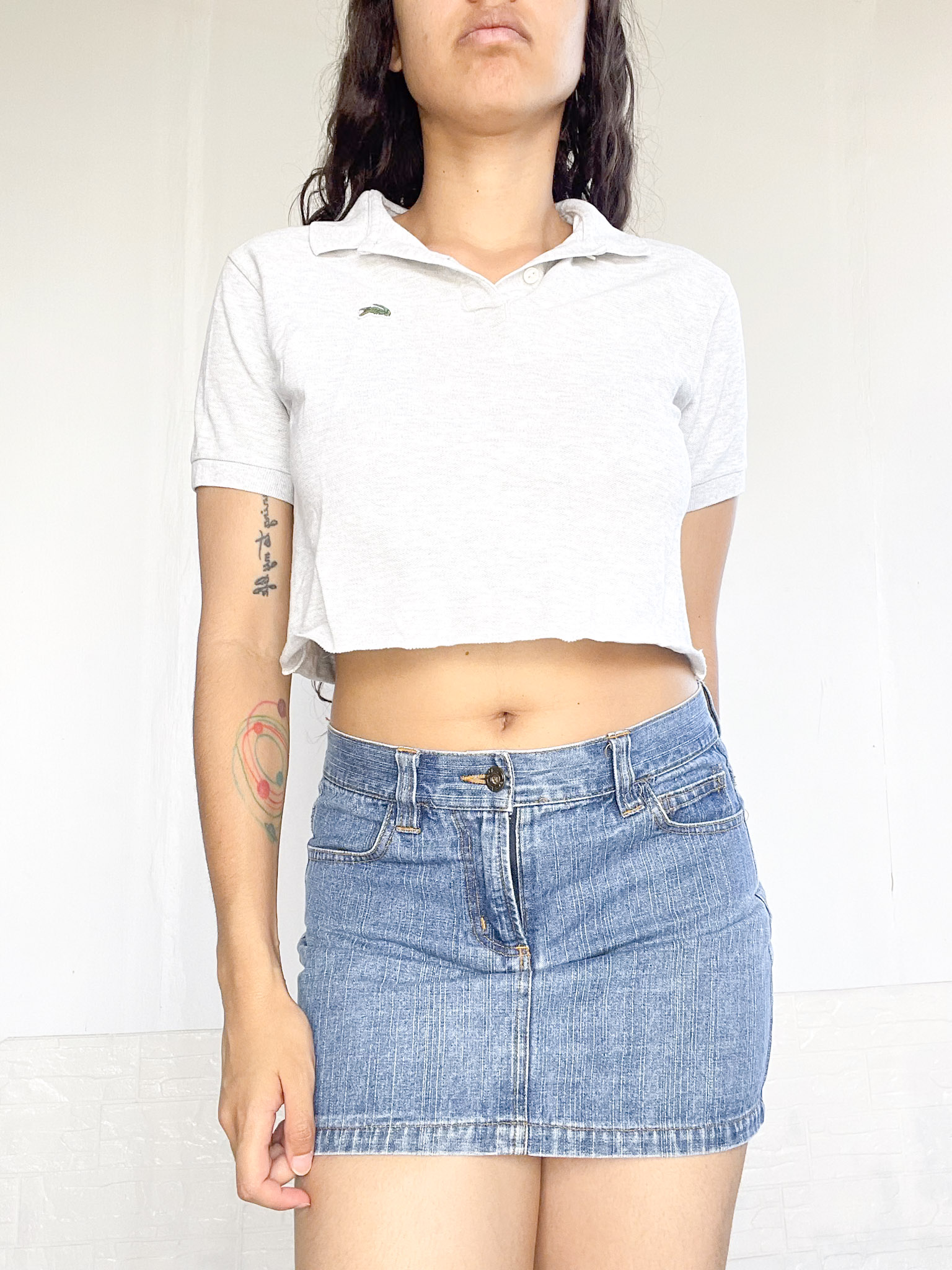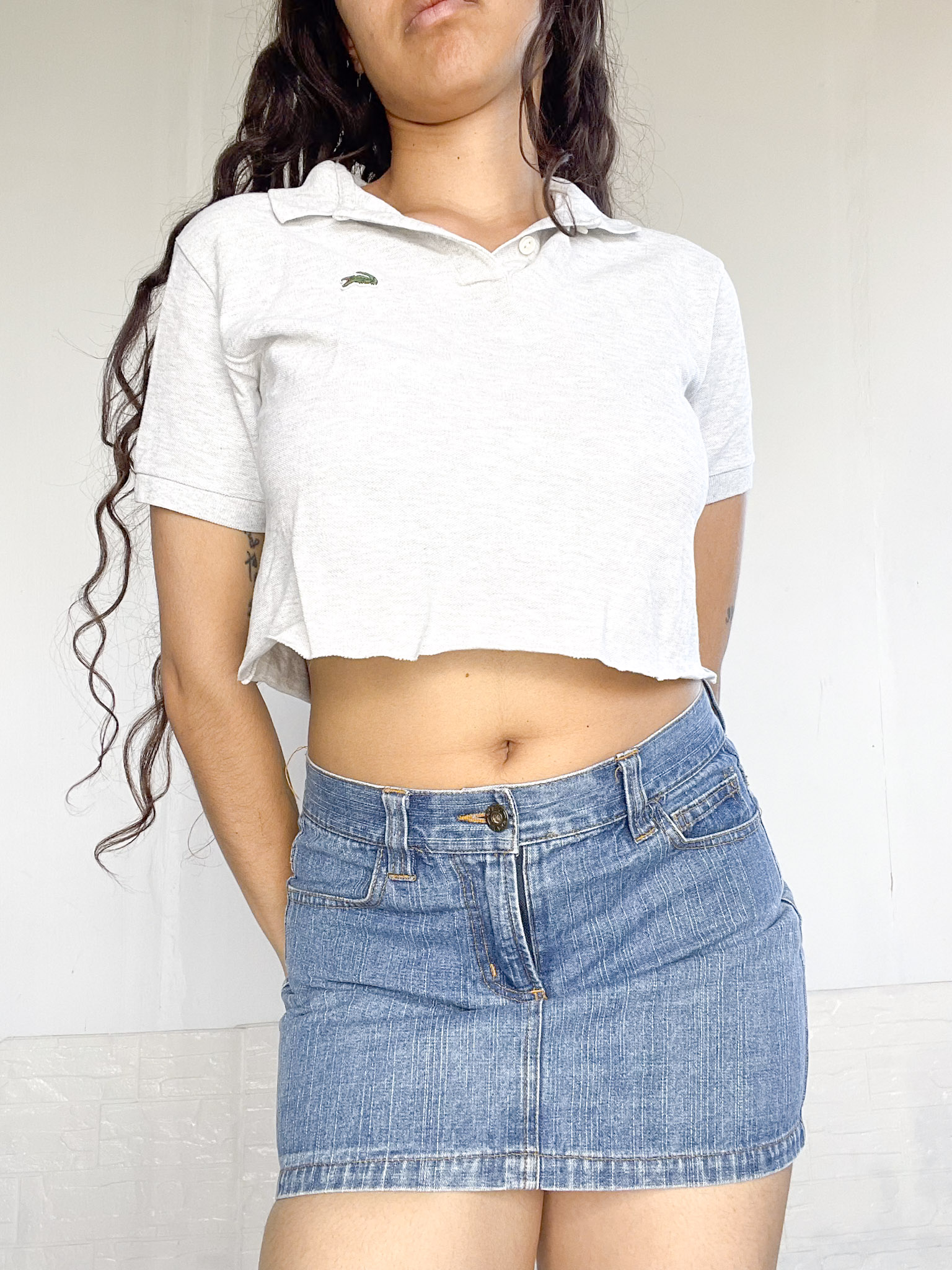 Remerita crop en color gris estilo polo,