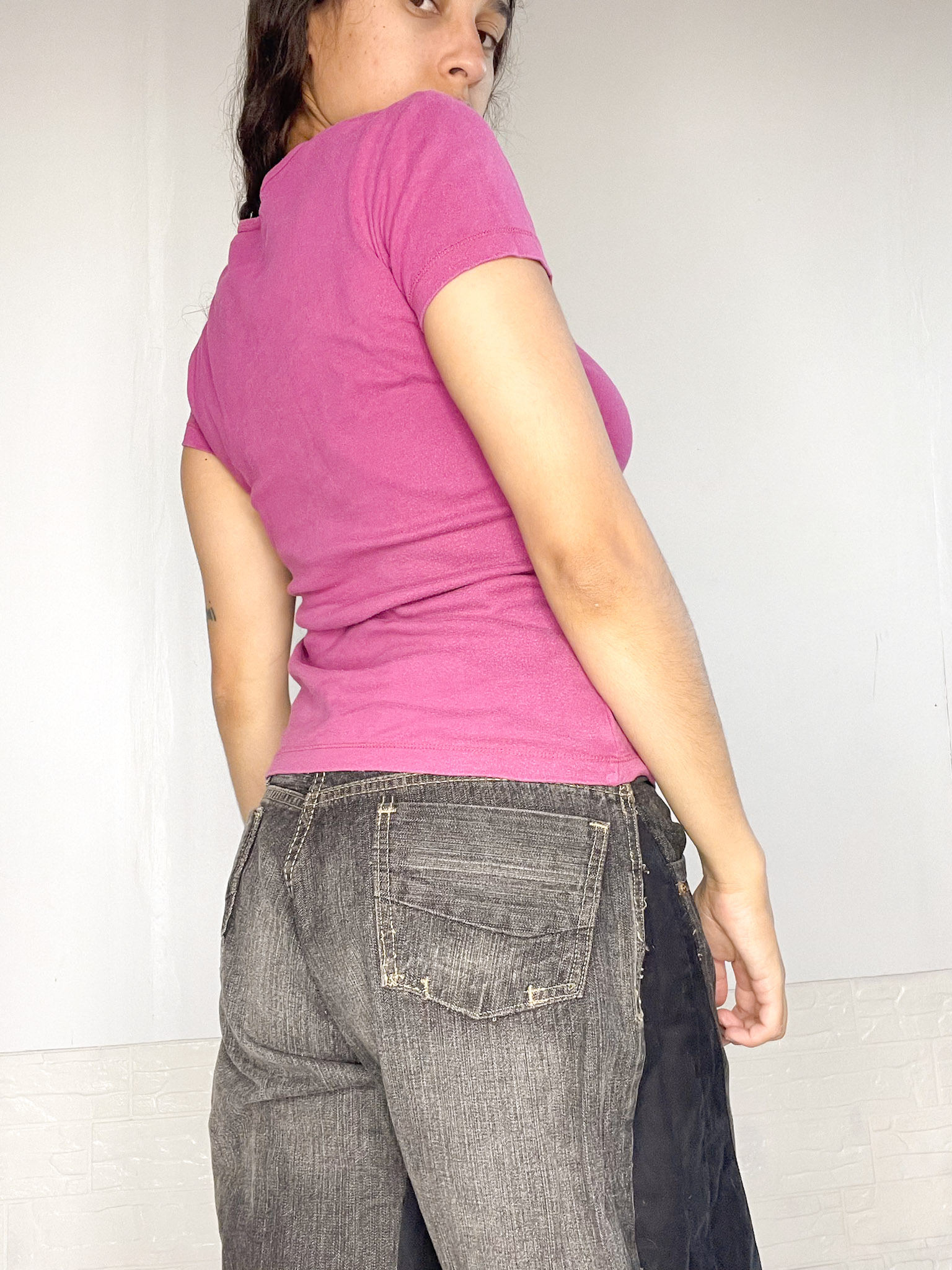 Remerita al cuerpo de algodón en color rosado