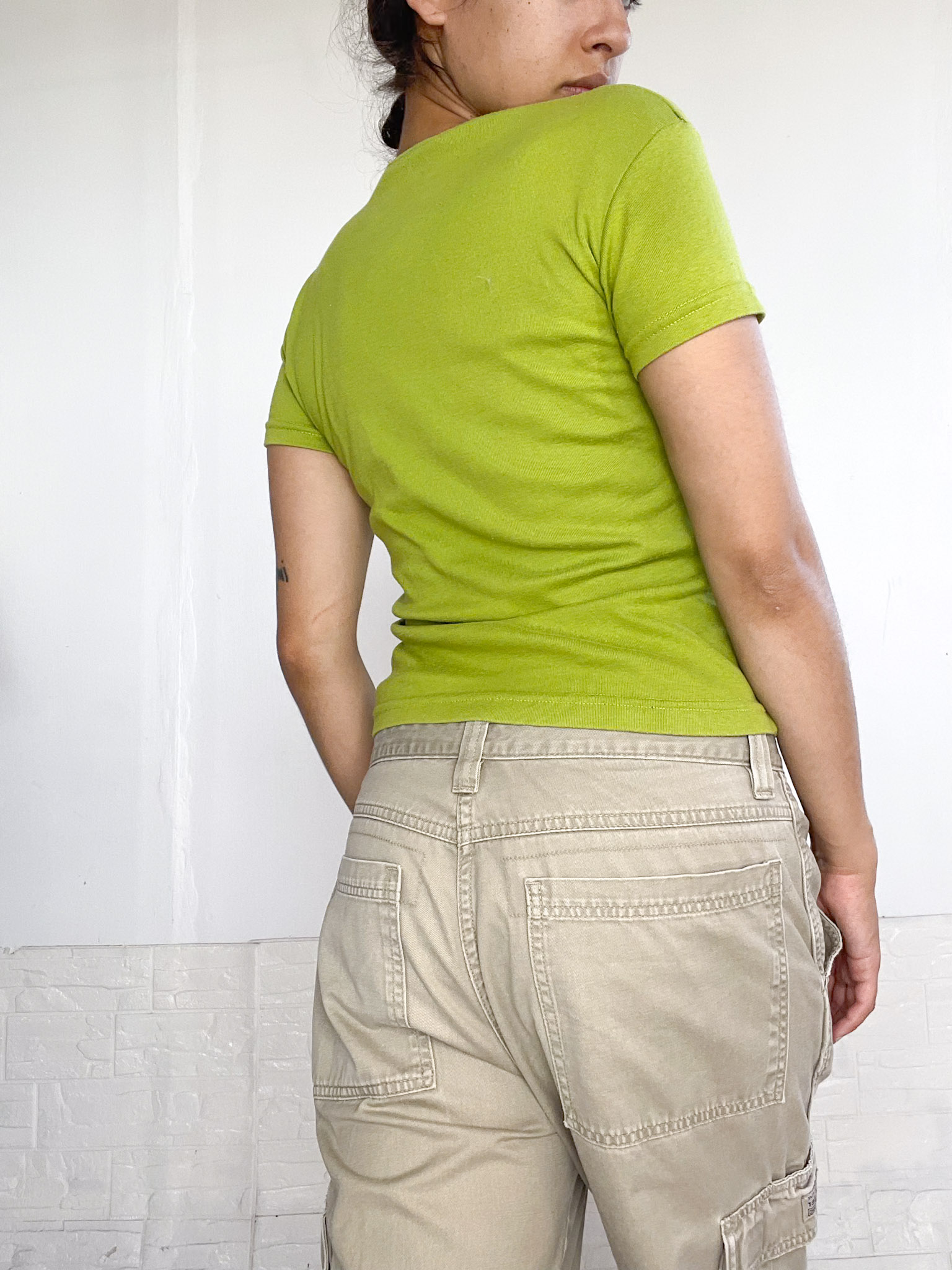 Remerita manga corta, de algodon en color verde. Escote en V
