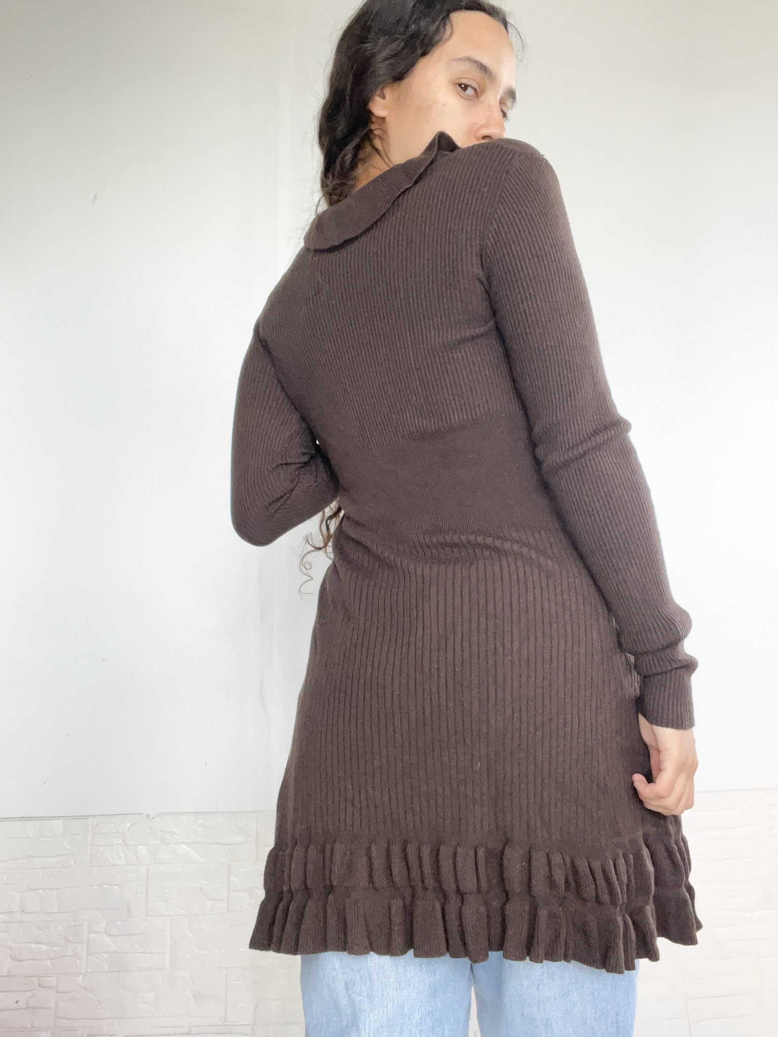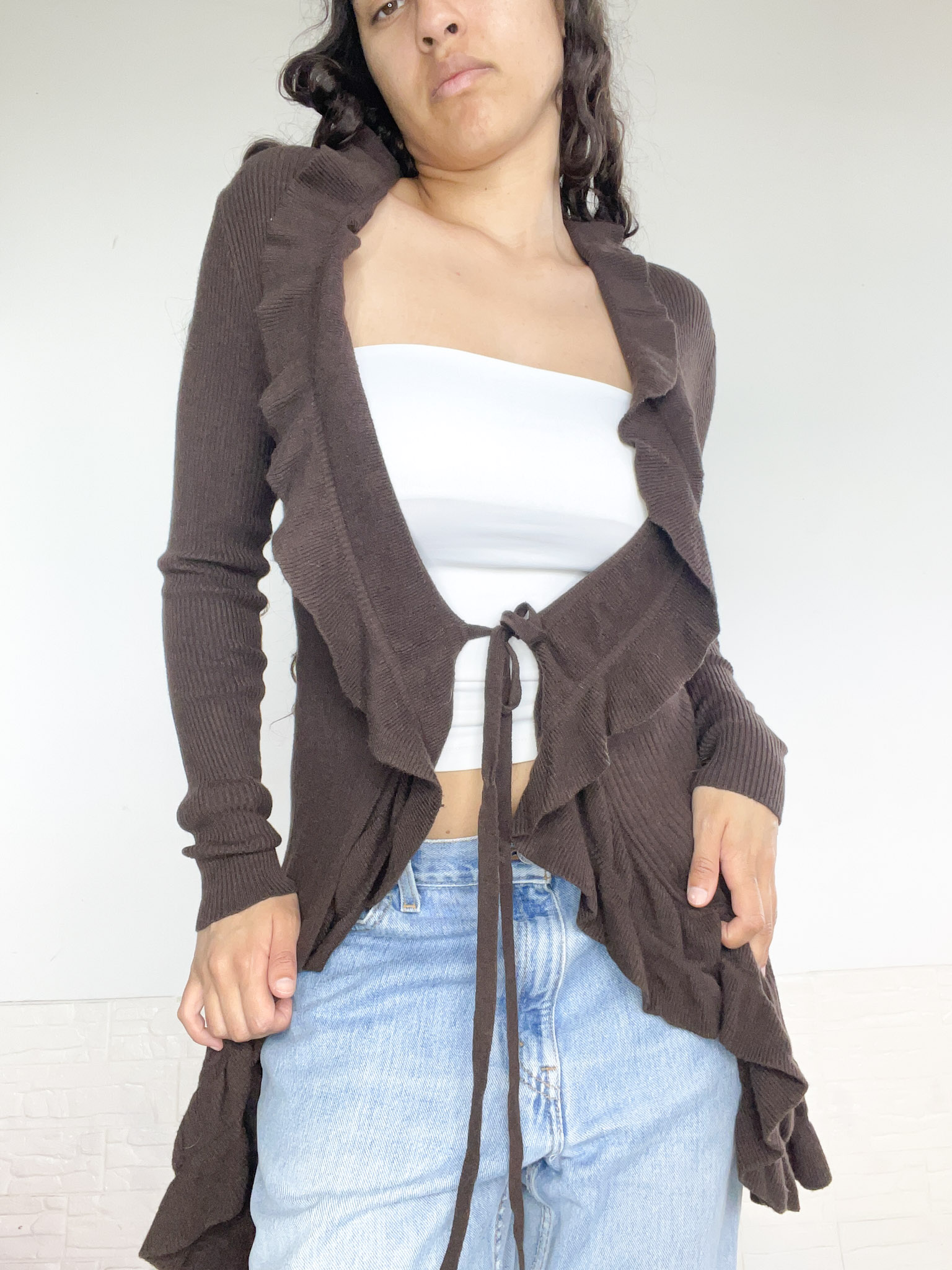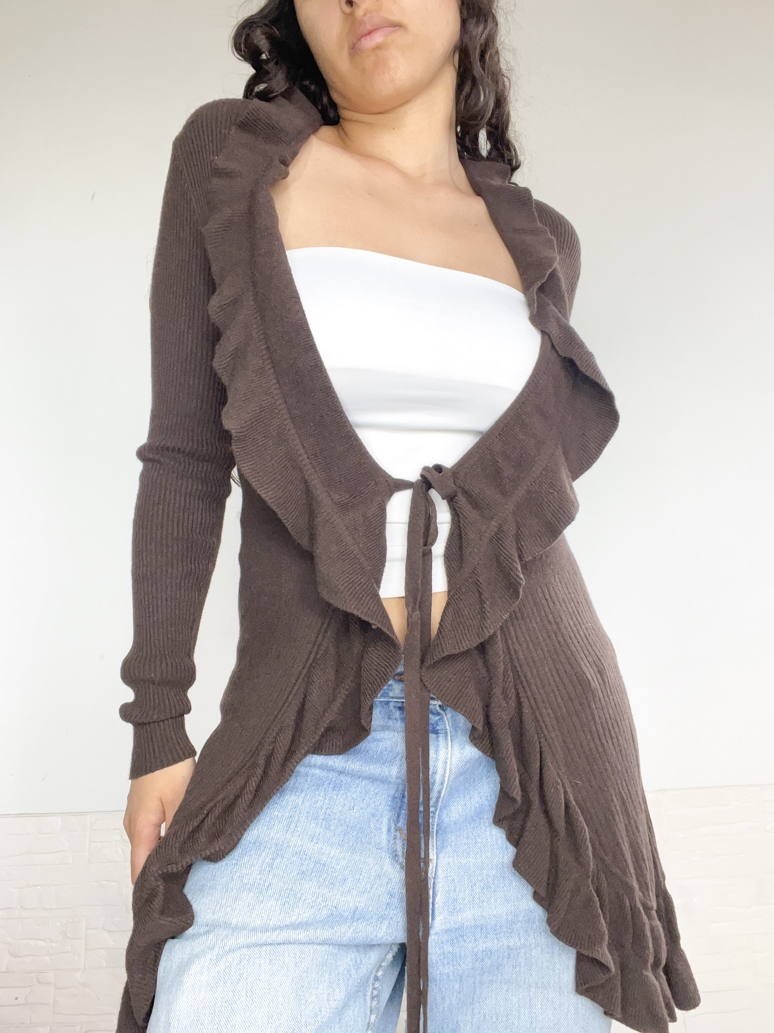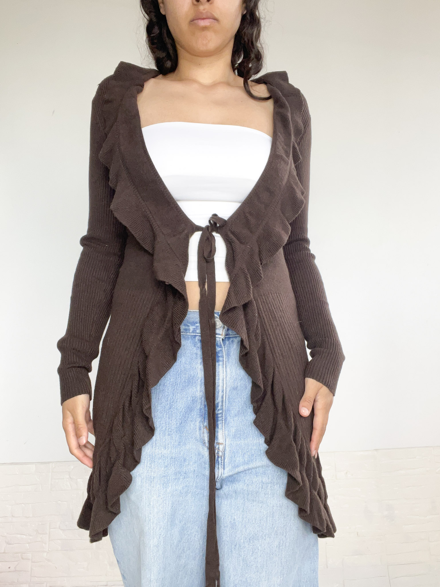 Saquito largo con volados, en color marrón