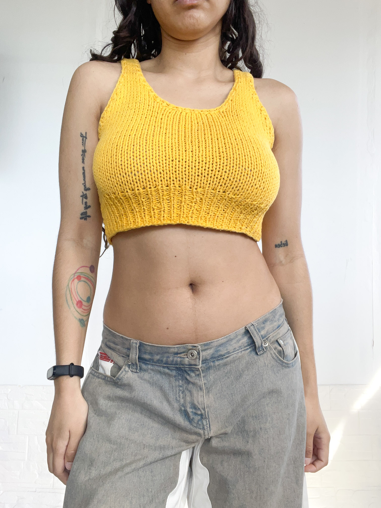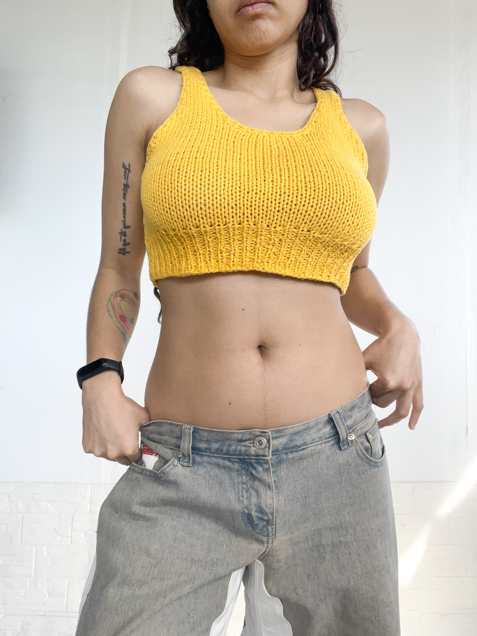 top tejido amarillo reworked
