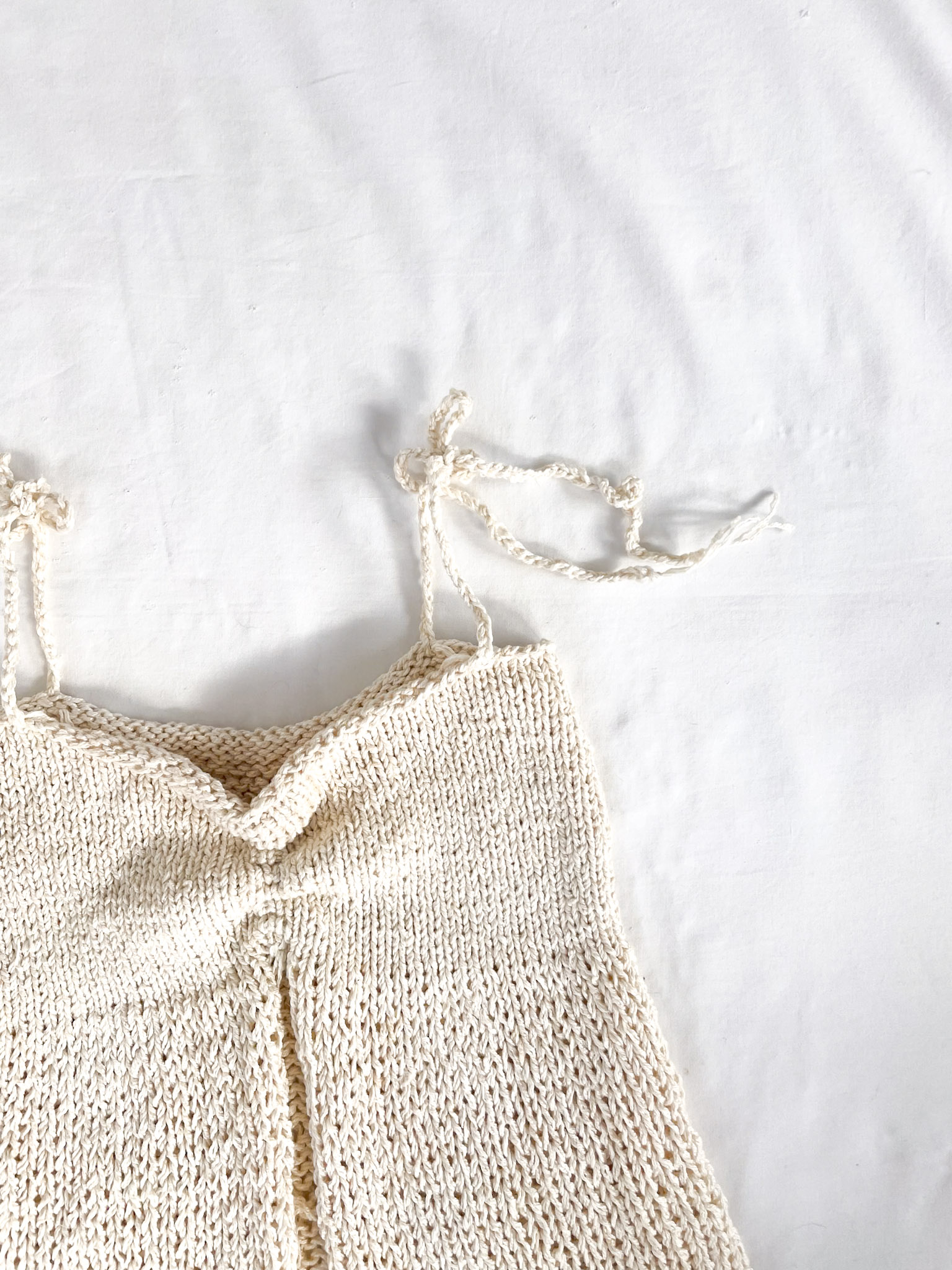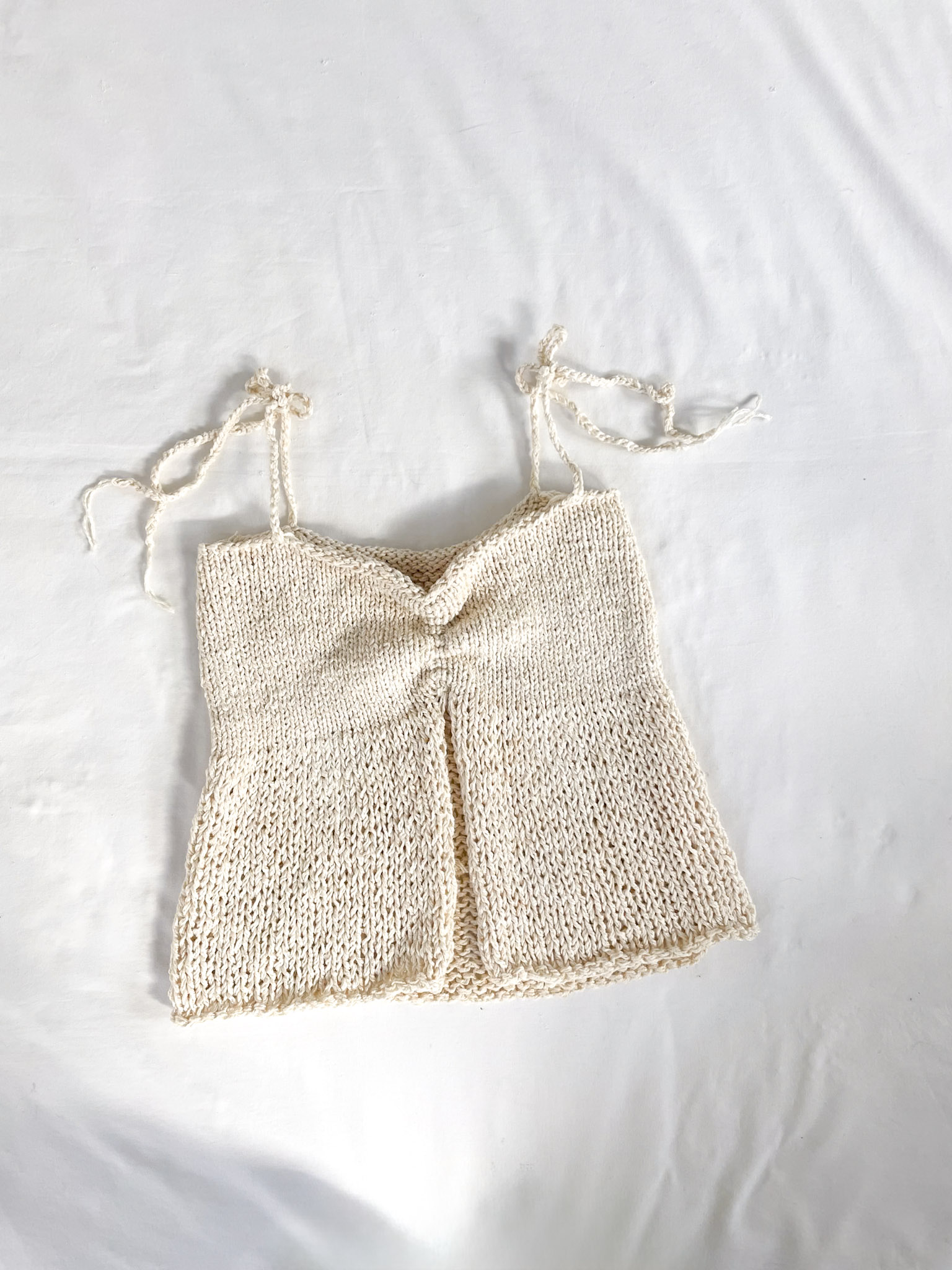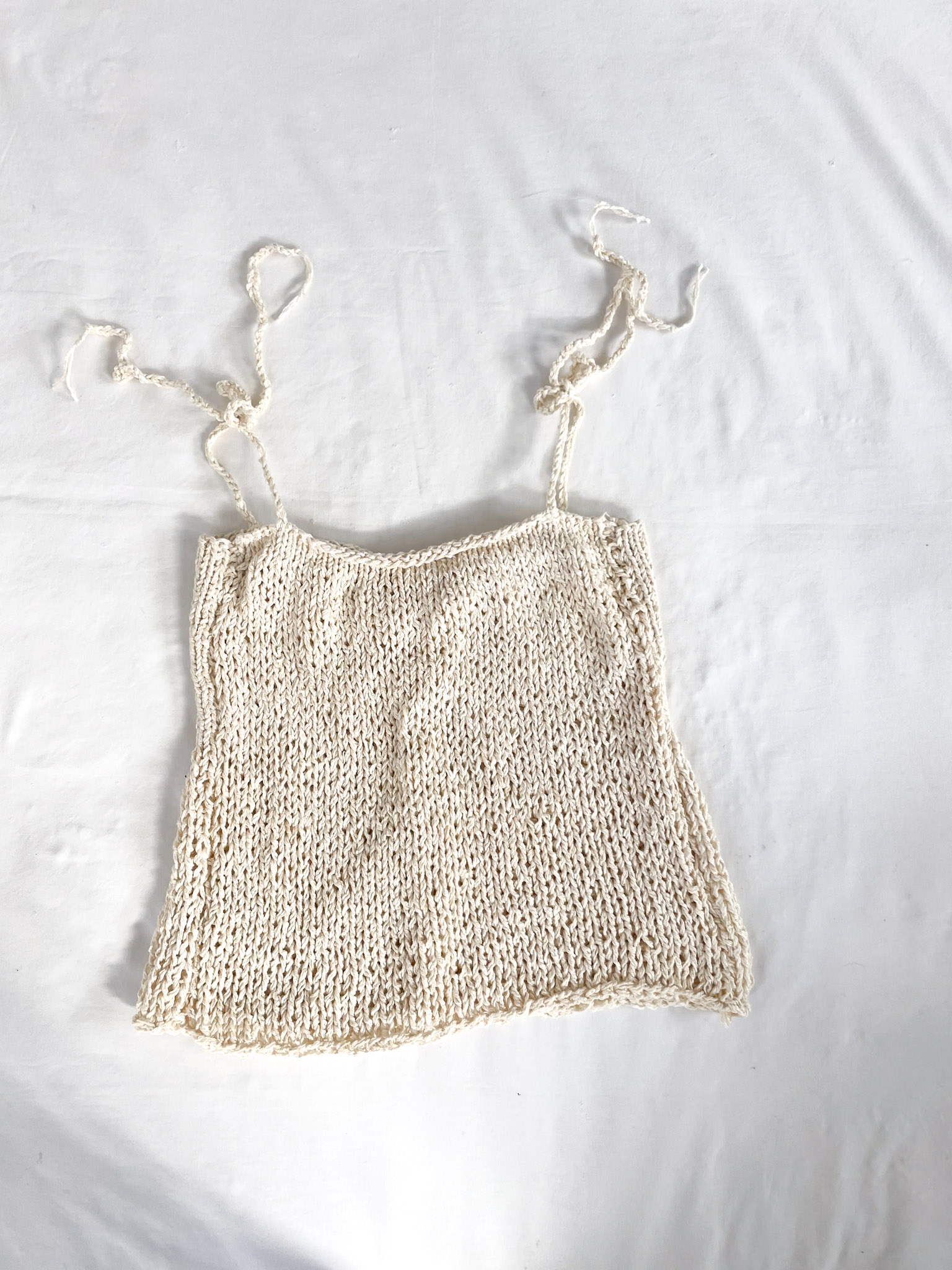este top esta tejido con fibra reciclada de una prendita de segunda mano