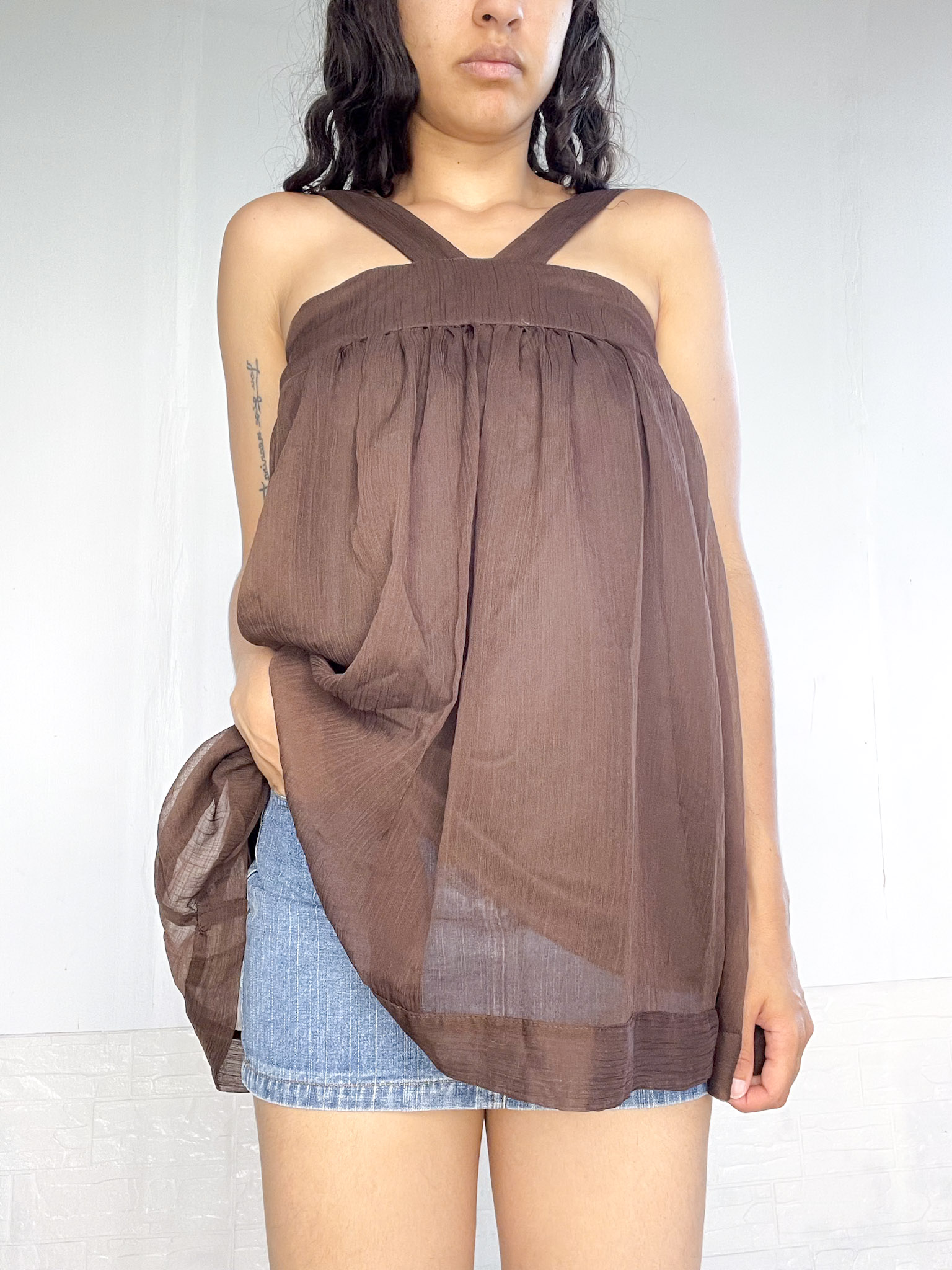 Top translúcido en color marrón