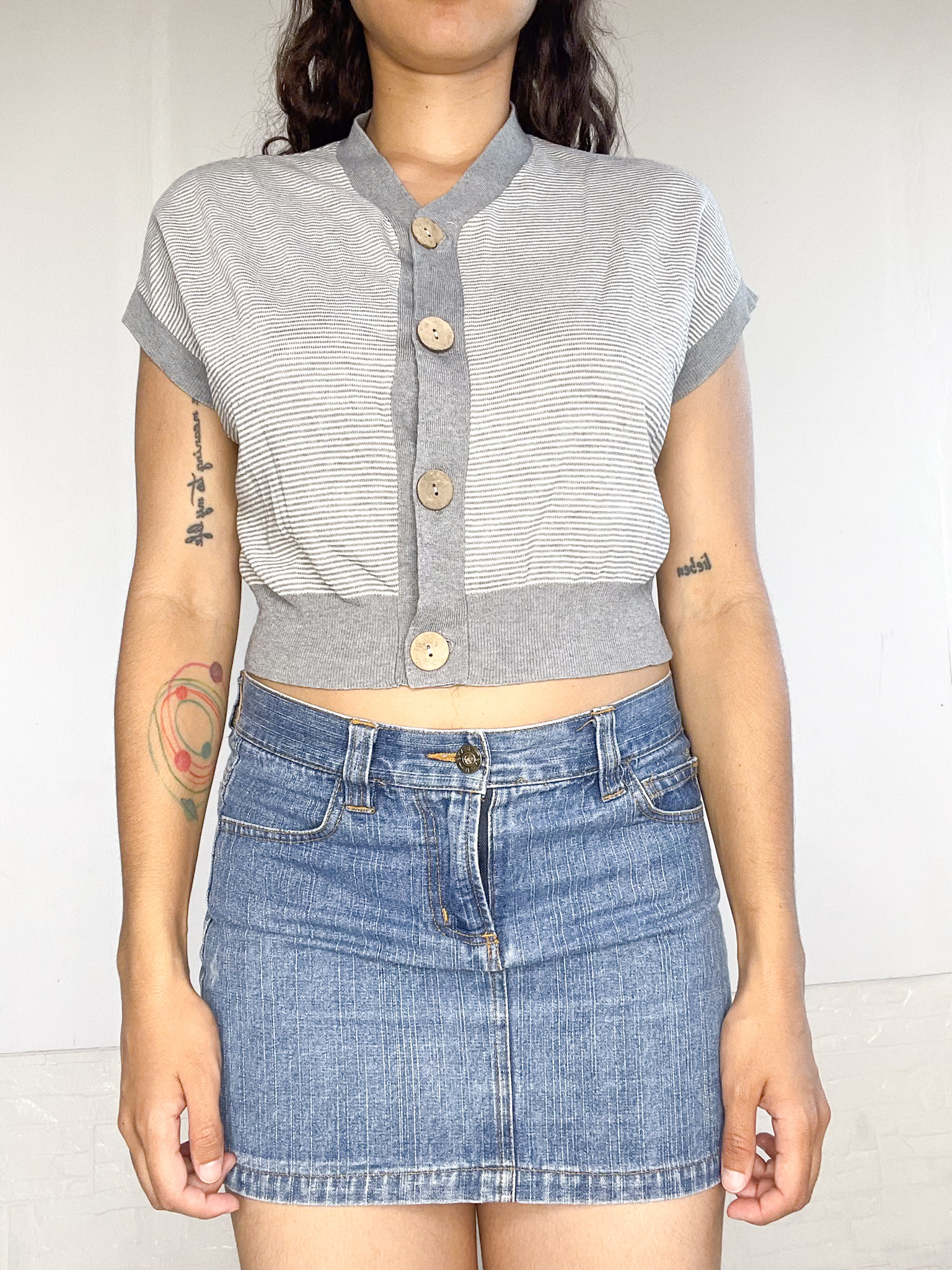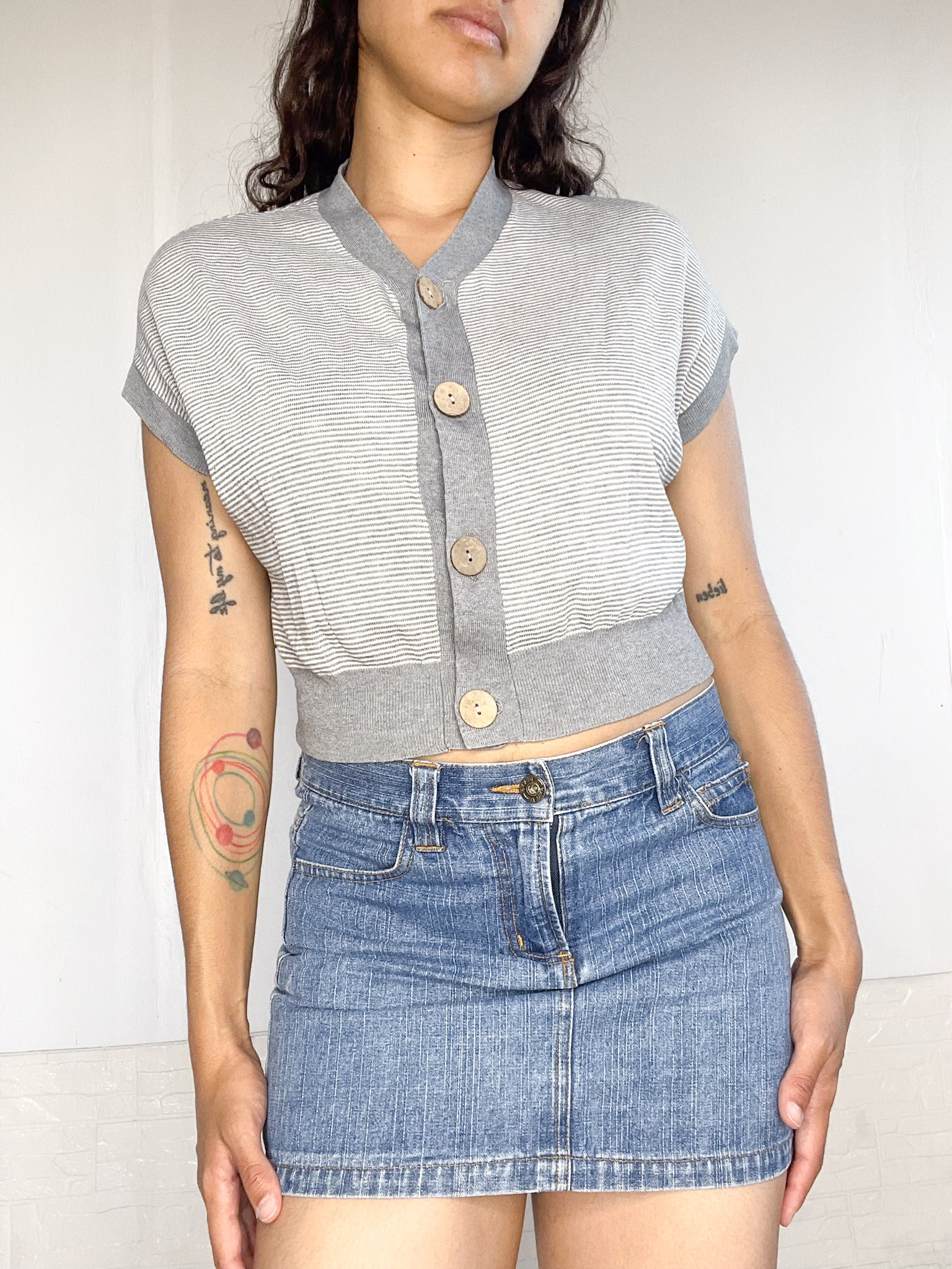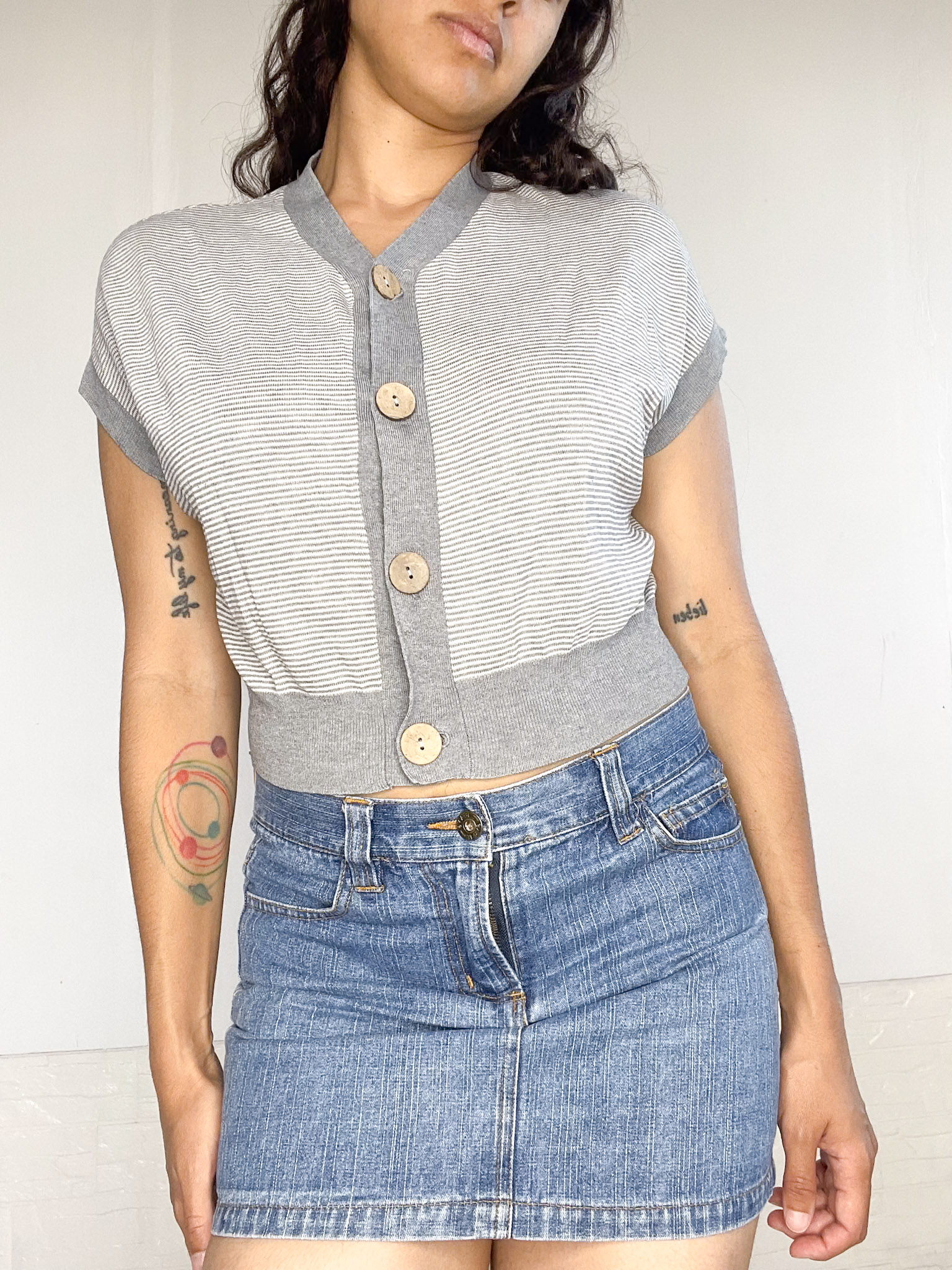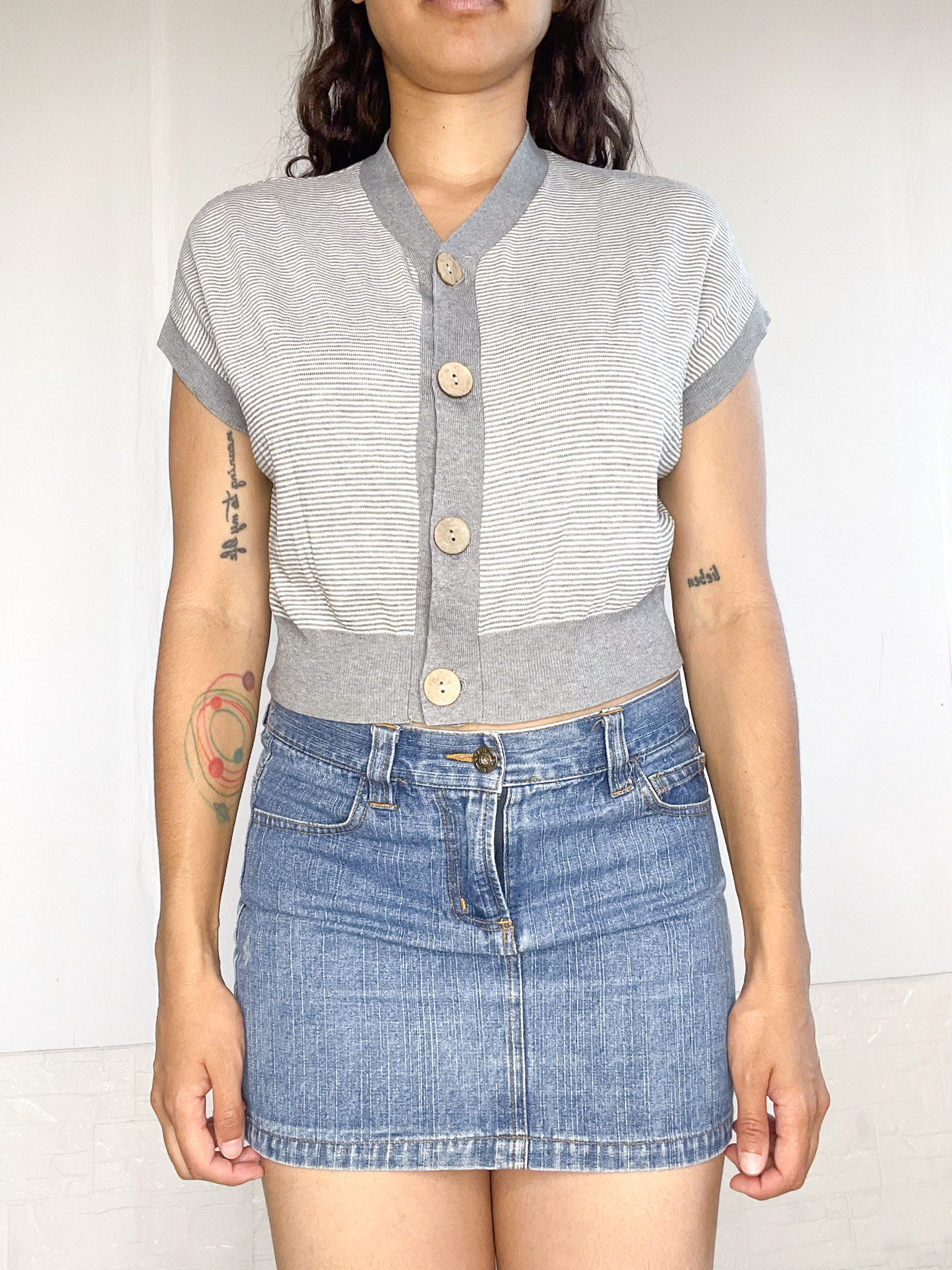 Top tejido a rayas, con botones al frente