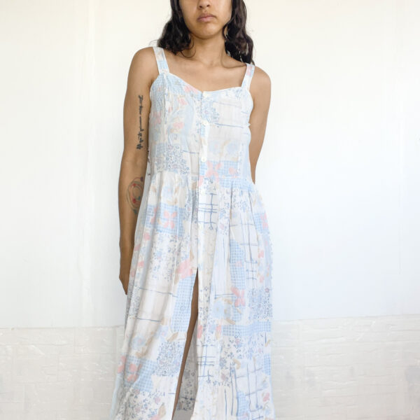 Vestido midi estampado, con espalda descubierta y prendido al frente